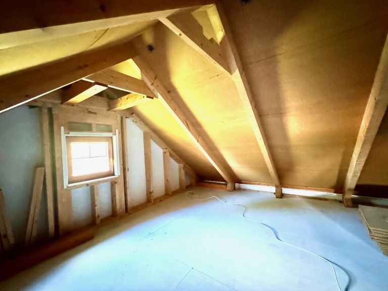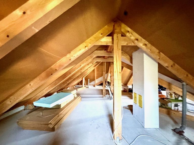 Ein besonderes Highlight ist der bereits vorbereitete Dachboden mit rund 60 m² Fläche. Hier lassen sich mühelos zusätzliche Wohnträume realisieren – ob Atelier, Schlafzimmer oder Homeoffice mit Ausblick auf die grüne Umgebung.