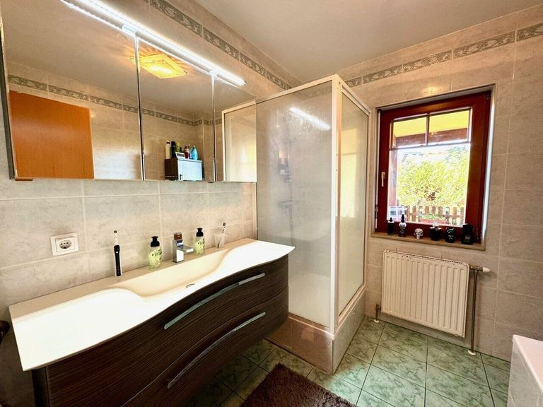 Badezimmer: Großzügig, mit Dusche und Badewanne