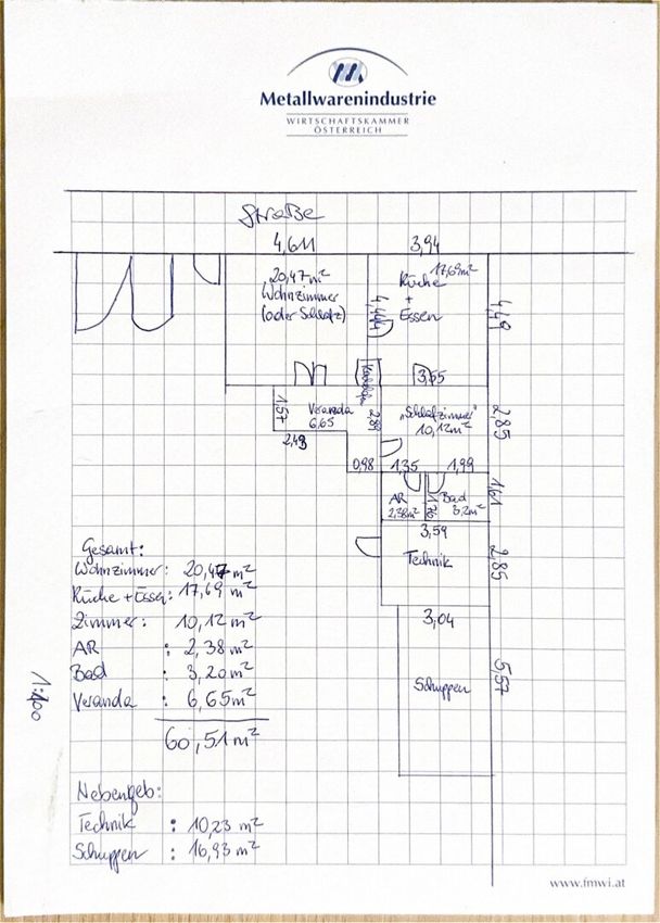 - Einfamilienhaus mit ca. 60m² Wohnnutzfläche + Technikraum 10m² und Schuppen knapp 17 m²