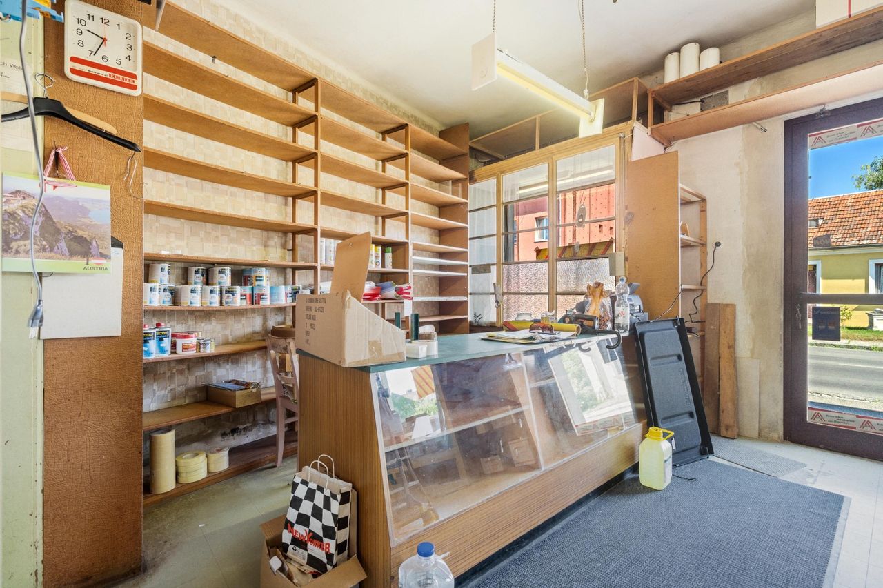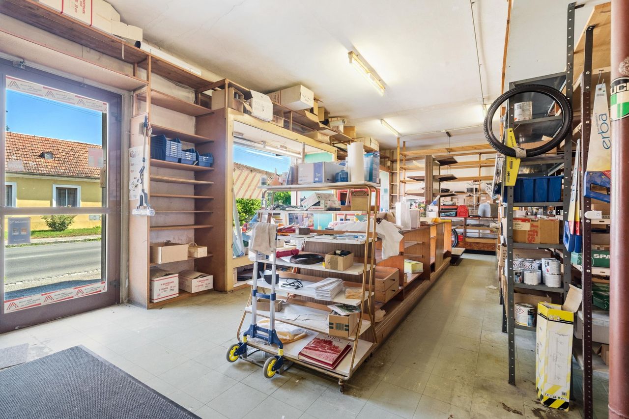 Das großzügige Geschäftslokal umfasst neben Verkaufs- bzw. Arbeitsflächen auch ein Lager, eine Werkstatt sowie einen ausgebauten Wintergarten. Ein gemütliches Bauernstüberl mit Gästebereich und ein separates WC runden das Angebot im Erdgeschoss ab – perfekt für Gastronomie, Handwerk oder Dienstleistungen.