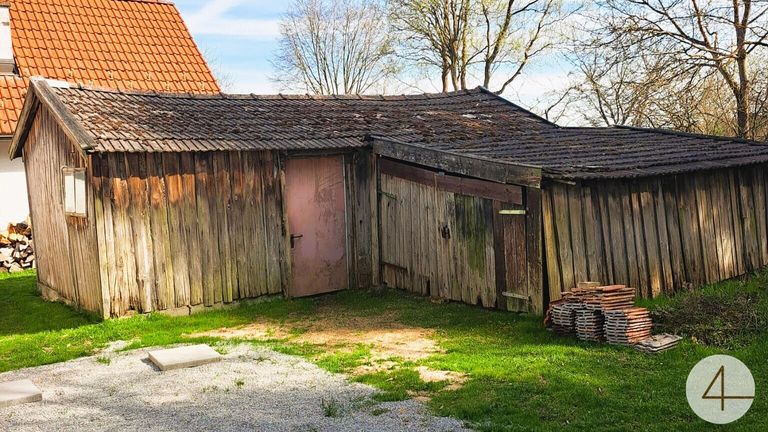 Ein kleiner Holzschuppen steht für Lagermöglichkeiten zur Verfügung.