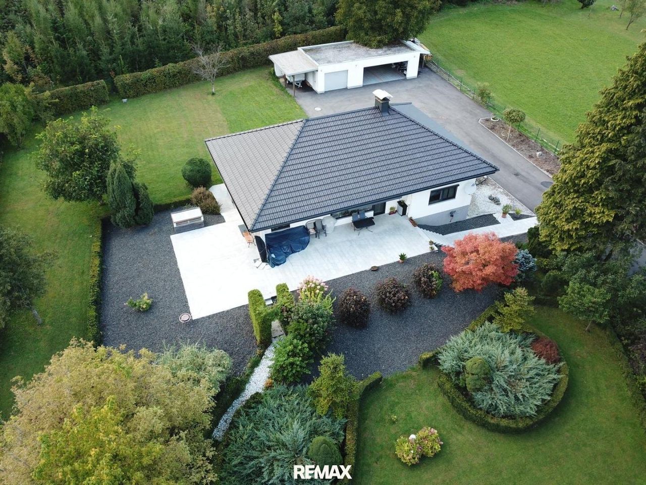 Die große Terrasse mit den schönen Ausblicken bereitet Ihnen pures Urlaubsfeeling! Ein Spaziergang in Ihrem Garten wird Ihnen große Freude bereiten und Sie zur Ruhe kommen lassen.