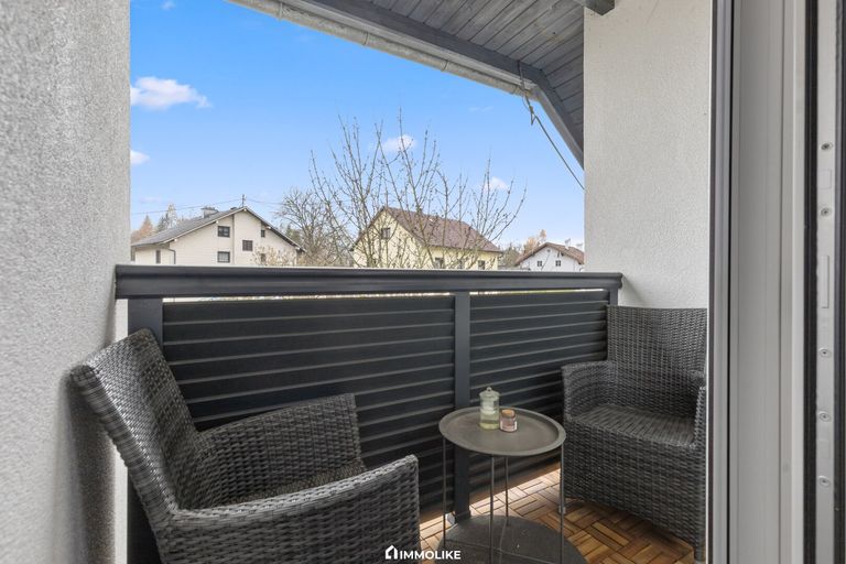 Der Balkon gehört exklusiv zum Zimmer am Ende des Flurs und bietet einen angenehmen privaten Außenbereich.