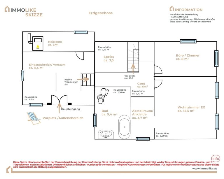 Die Angaben zu Flächen, Bau- und Jahreszahlen basieren teilweise auf Informationen des Eigentümers und den vorliegenden Unterlagen. Da nicht mehr alle Dokumente verfügbar sind, können Abweichungen nicht ausgeschlossen werden. Bei Bedarf empfehlen wir eine ergänzende, eigenständige Überprüfung, insbesondere im Hinblick auf eventuelle Umbau- oder Sanierungsmaßnahmen.