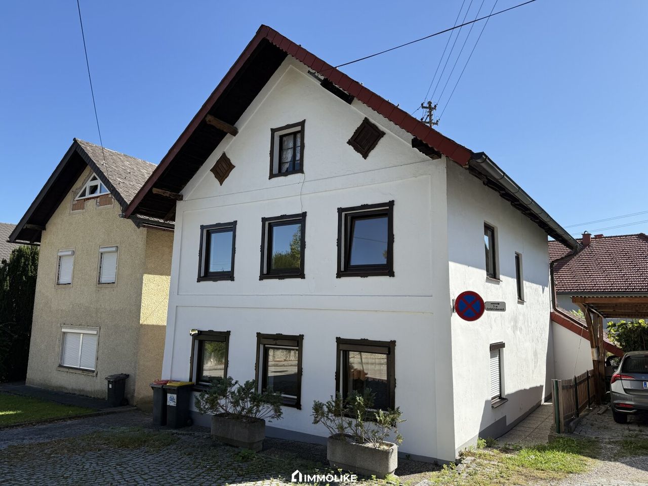 Vor dem Haus befindet sich ein eigener Stellplatz, daneben gibt es weitere öffentliche Parkmöglichkeiten. Ein kleiner, südseitiger Vorplatz mit rund 16–18 m² schafft sonnigen Freiraum im Alltag und eignet sich bestens als pflegeleichter Gartenersatz.