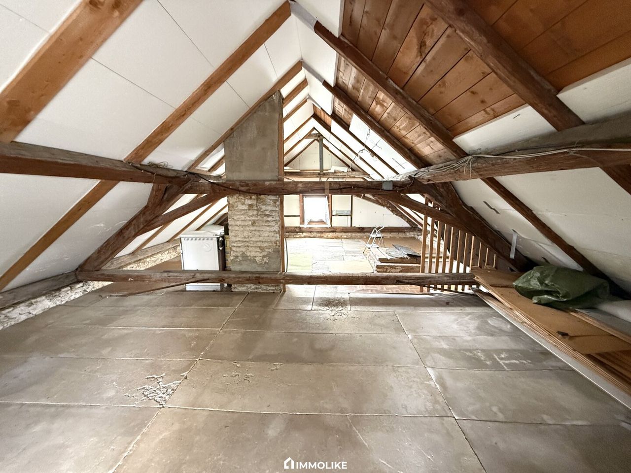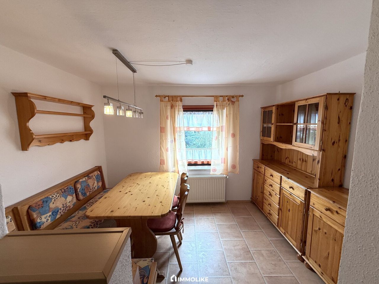 Im Obergeschoss befinden sich die Küche mit angrenzendem Essbereich – von dessen Fenster aus man sogar den Traunstein erblicken kann – sowie ein großes Wohn- oder Schlafzimmer, ein Kinderzimmer und ein kleines, vielseitig nutzbares Zimmer. Der Dachboden bietet eventuell zusätzliche Ausbaureserven sowie über 50 m² Abstellfläche.