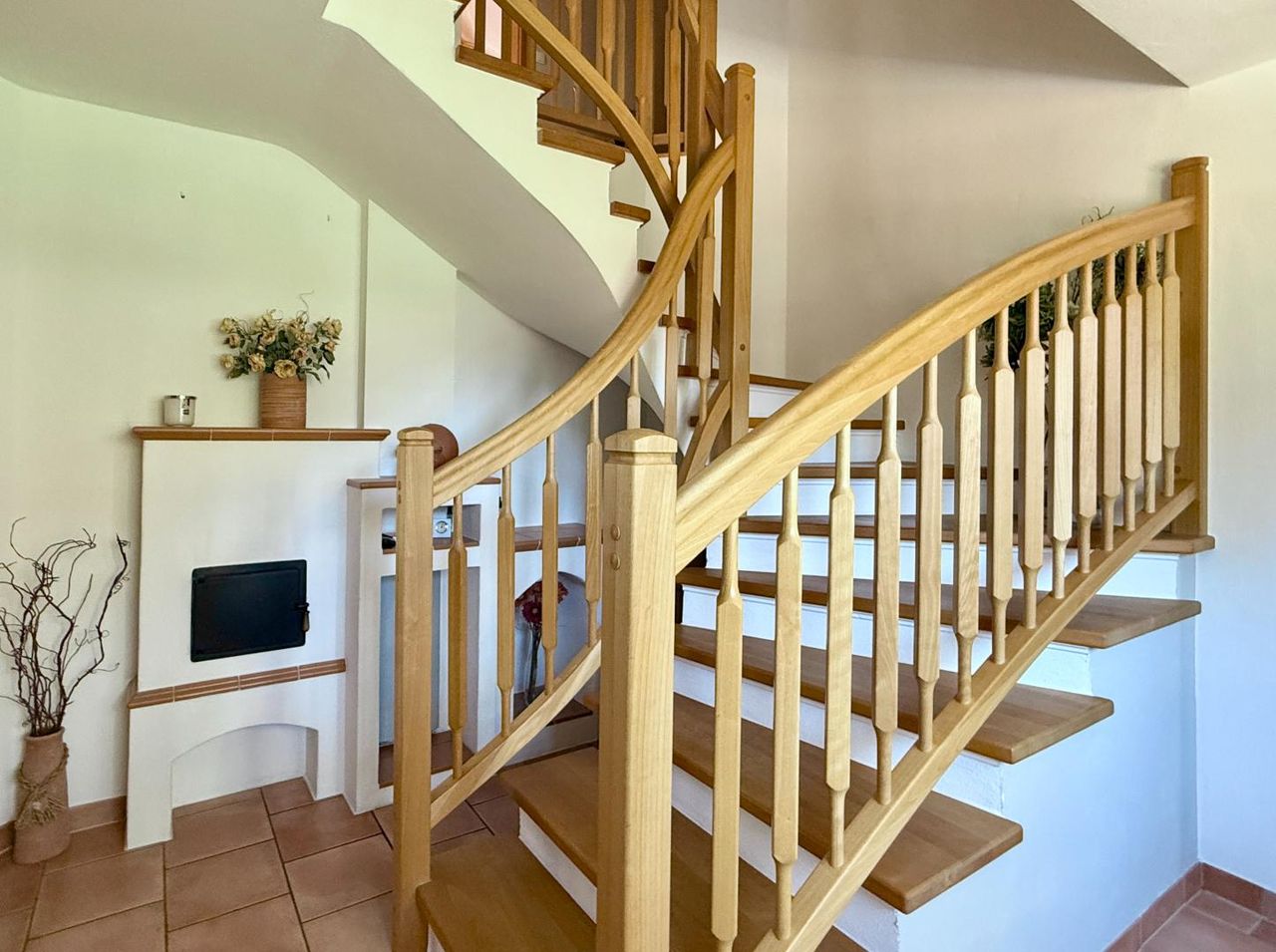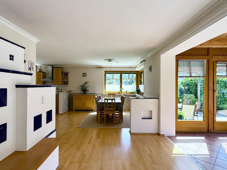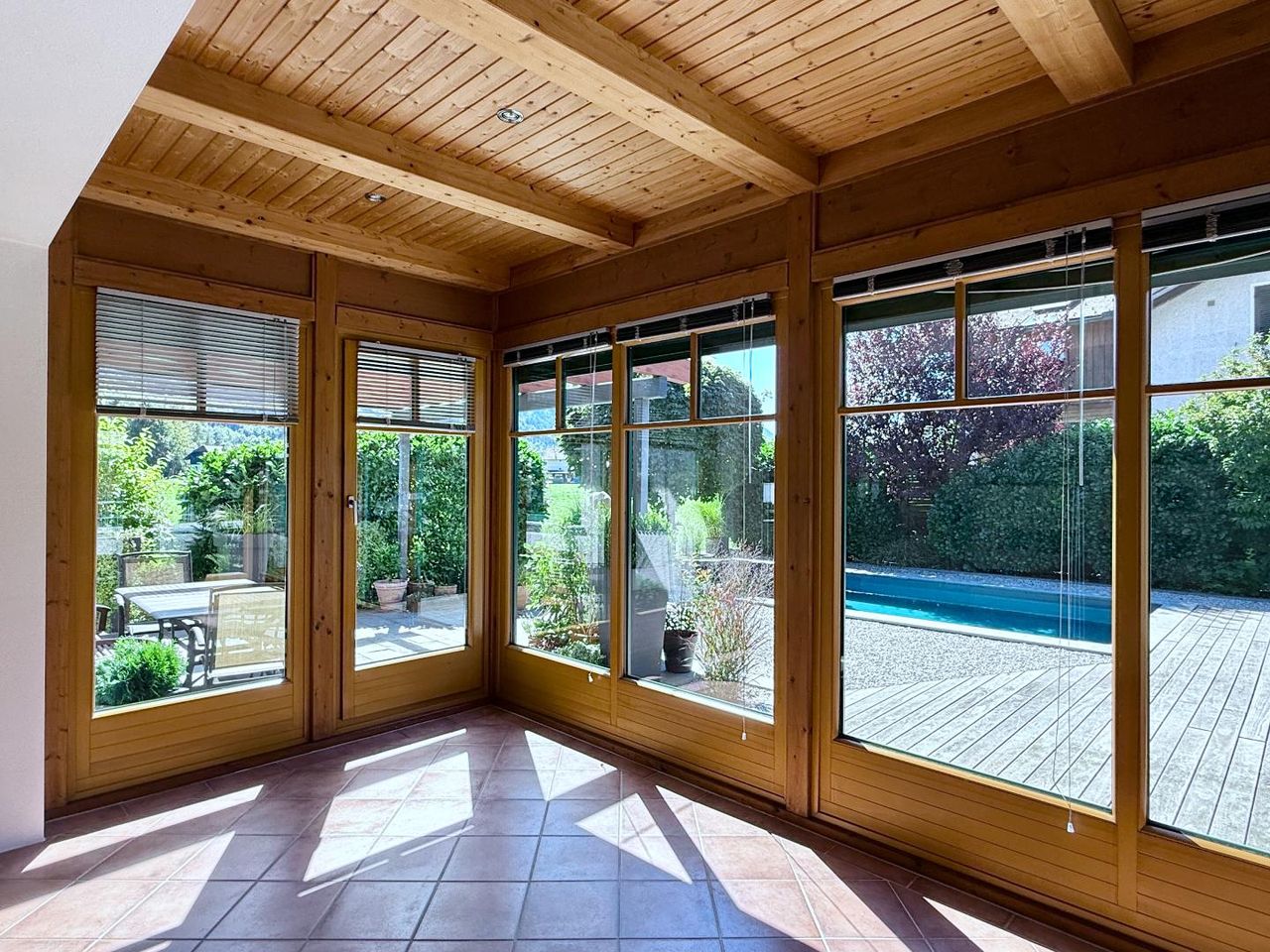 Helle und großzügig geschnittene Wohnräume, ein offener Wohn- und Essbereich mit Kachelofen, ein Wintergarten mit direktem Zugang zur Terrasse, Garten und "Bio" Pool sind ideal Voraussetzungen zum wohlfühlen. Die Immobilie verfügt über 3 gut geschnittene Schlafzimmer, darunter ein Elternschlafzimmer mit begehbarem Schrankraum, ein Badezimmer im Obergeschoss mit Eckbadewanne und Dusche sowie ein zusätzliches Gäste-WC im Erdgeschoss. Über der Doppelgarage wurde ein ca. 40 m² großer Raum geschaffen welcher z.B. als Fitness-, Entspannung-, Bibliothek- oder Büroraum genutzt werden kann. Die Doppelgarage und die Werkstatt haben direktem Zugang zum Haus.
