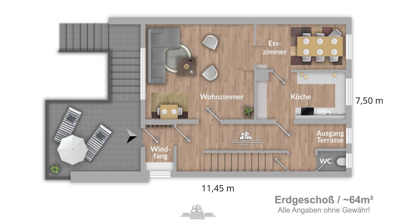 Die Raumeinteilung ist durchdacht und gliedert sich in: