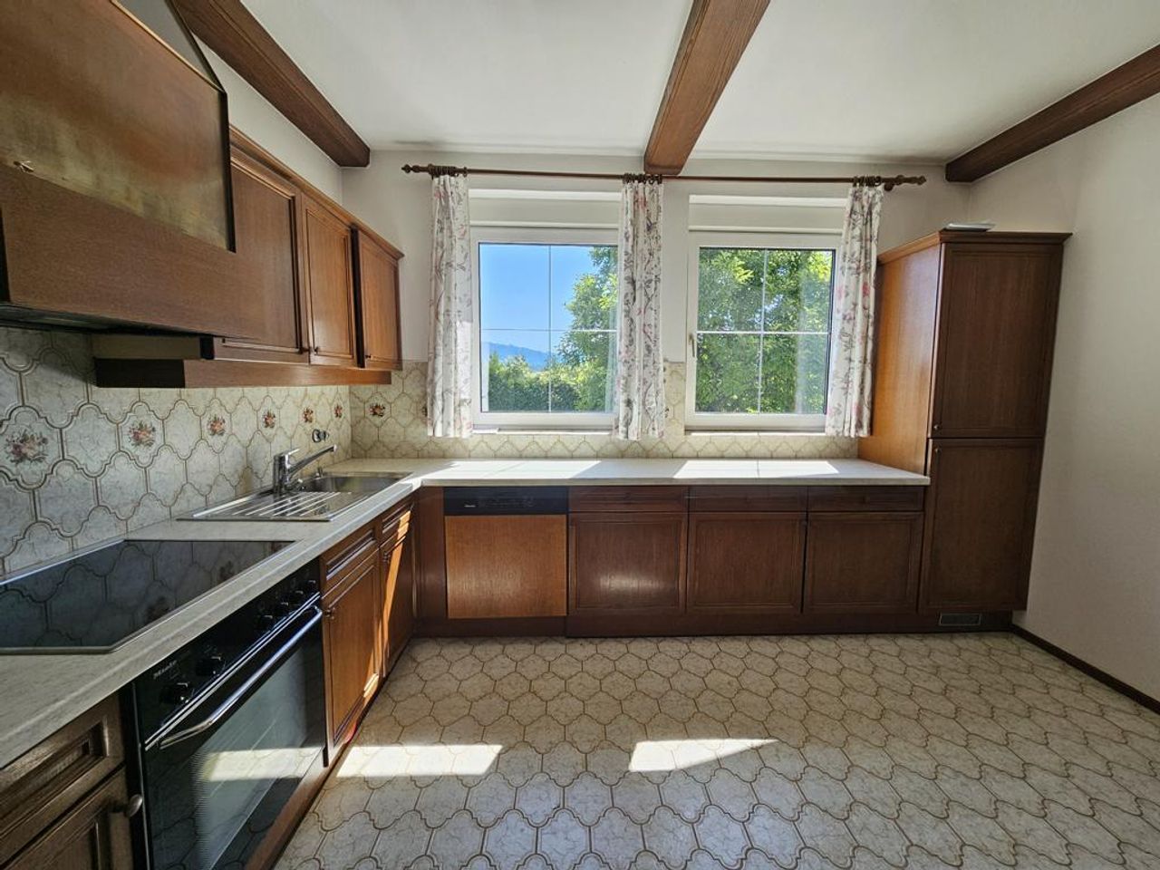 Dieses gepflegte Einfamilienhaus bietet auf einer Ebene im Erdgeschoss rund 135 m² barrierefreie Wohnfläche und verbindet eine ruhige Wohnlage mit zentrumsnaher Infrastruktur. Das 1.013 m² große, eben gelegene Grundstück mit liebevoll angelegtem Garten und altem Baumbestand sorgt für Privatsphäre und eine grüne Wohlfühlatmosphäre. Der Blick in die beeindruckende Gebirgswelt ist aktuell durch eigene Sträucher und Bäume leicht abgeschirmt – wer mehr Panorama wünscht, kann dieses mit wenigen Handgriffen deutlich erweitern.