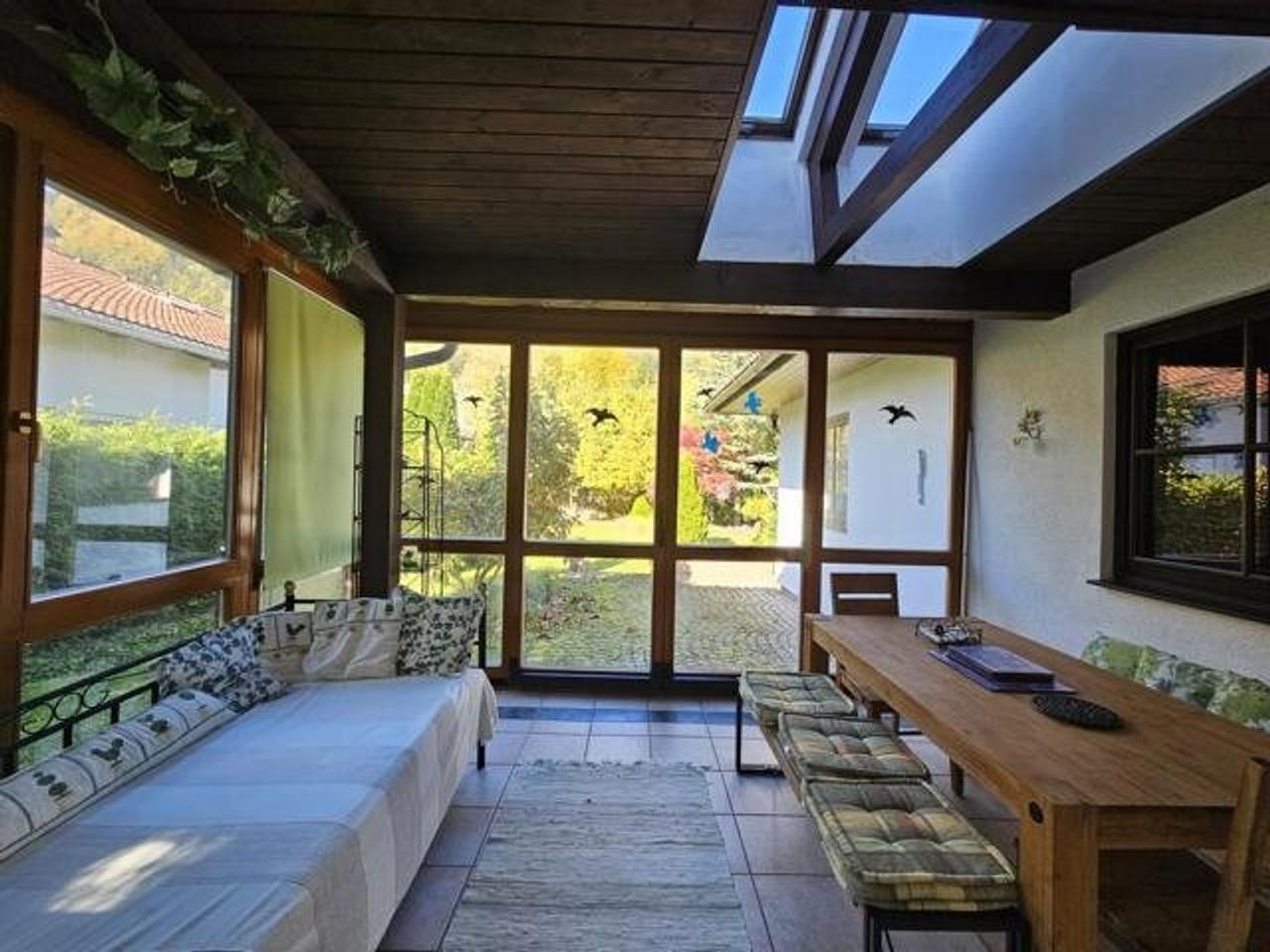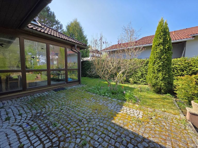 Die Wohnfläche beträgt ca. 110 m². Zu den Highlights des Hauses zählen der Wintergarten, der Kachelofen, der für eine behagliche Atmosphäre sorgt, der gepflegte, uneinsichtige Garten und die Sauna im Keller.
