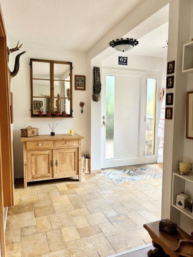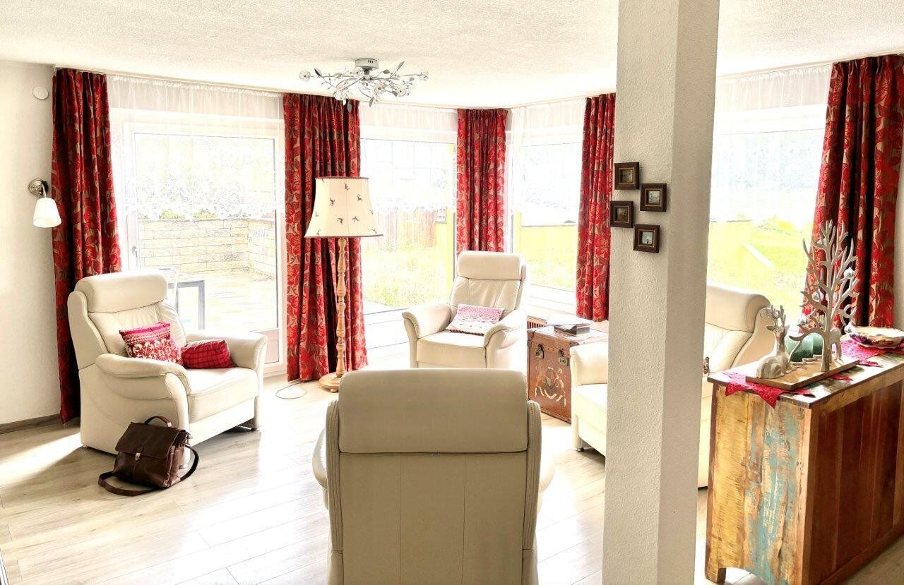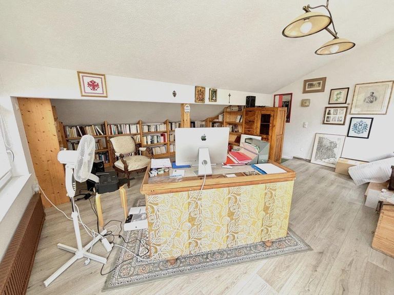 Das Haus wird teilmöbliert verkauft. Eine Einbauküche, 2 Badeinrichtungen, ein Büro, Schlafräume, werden mitverkauft. Eine Terrasse und ein Balkon laden zum Frühstück in der Morgensonne. Direkt oberhalb des Wohnzimmers gibt es ein Büro für Homeoffice mit einer kleinen Bibliothek.
