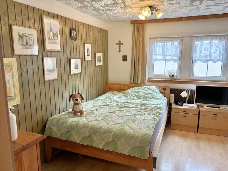 Das Heizsystem wurde 2022 erneuert und ein Pelletsofen dient nun als Zentralheizung. Die Fenster wurden gewechselt, und im EG gibt es teilweise einen Vollwärmeschutz. Dank der Bauweise, könnte es von zwei Familien aufgrund zweier Eingänge getrennt bewohnt werden. Im OG wurde bereits das Bad und WC saniert, womit schon 2 getrennte Bäder vorhanden wären. Die Liegenschaft verfügt über 2 Parkplätze und...