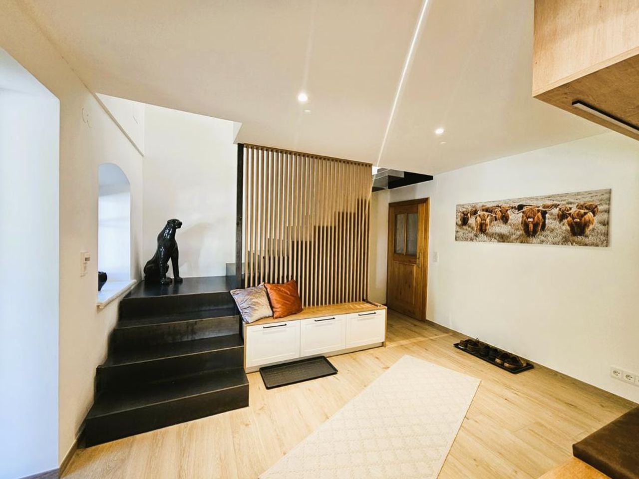 Während die alten Grundmauern den historischen Charakter bewahren, wurden der gesamte Ausbau des Obergeschosses sowie der Vorraum im Erdgeschoss vollständig neu errichtet und modern ausgestattet. Die obere Wohneinheit umfasst ca. 136 m² Wohnfläche sowie eine Galerie mit zusätzlichen rund 56 m², ohne Berücksichtigung der Dachschrägen.