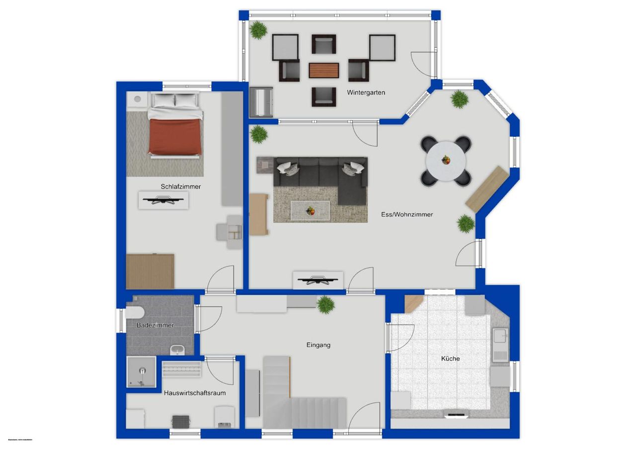 Der lichtdurchflutete Wintergarten (östlich ausgerichtet) erweitert den Wohnraum und bietet einen idealen Platz für den ersten Kaffee oder den Sonnenuntergang am Abend. Ein zusätzlicher, flexibel nutzbarer Raum – perfekt als Schlafzimmer, Gästezimmer, Büro oder kreativer Rückzugsort – ergänzt das Angebot. Ein kompaktes Badezimmer mit Dusche und WC sowie ein praktischer Technik- und Abstellraum runden das funktionale Erdgeschoss ab.