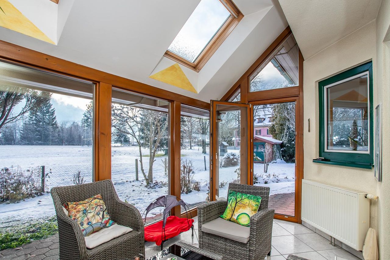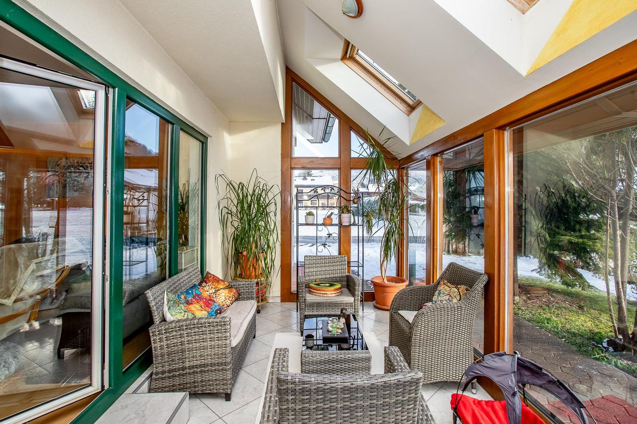 Schon beim Betreten des Hauses spürt man die einladende Wärme, die sofort ein Gefühl von Zuhause vermittelt. Vom großzügigen Vorraum öffnet sich der helle, offene Wohn- und Essbereich – das lebendige Herz des Erdgeschosses. Zahlreiche Fensterflächen fluten den Raum mit Licht und führen direkt auf die Terrasse (südlich ausgerichtet), die sich wie ein zweites Wohnzimmer im Grünen anfühlt. Die angrenzende Küche lädt zu spontanen Kochmomenten und entspannten Abenden ein. Immobilien Slideshow ansehen unter folgendem Link: Video Der lichtdurchflutete Wintergarten (östlich ausgerichtet) erweitert den Wohnraum und bietet einen idealen Platz für den ersten Kaffee oder den Sonnenuntergang am Abend. Ein...