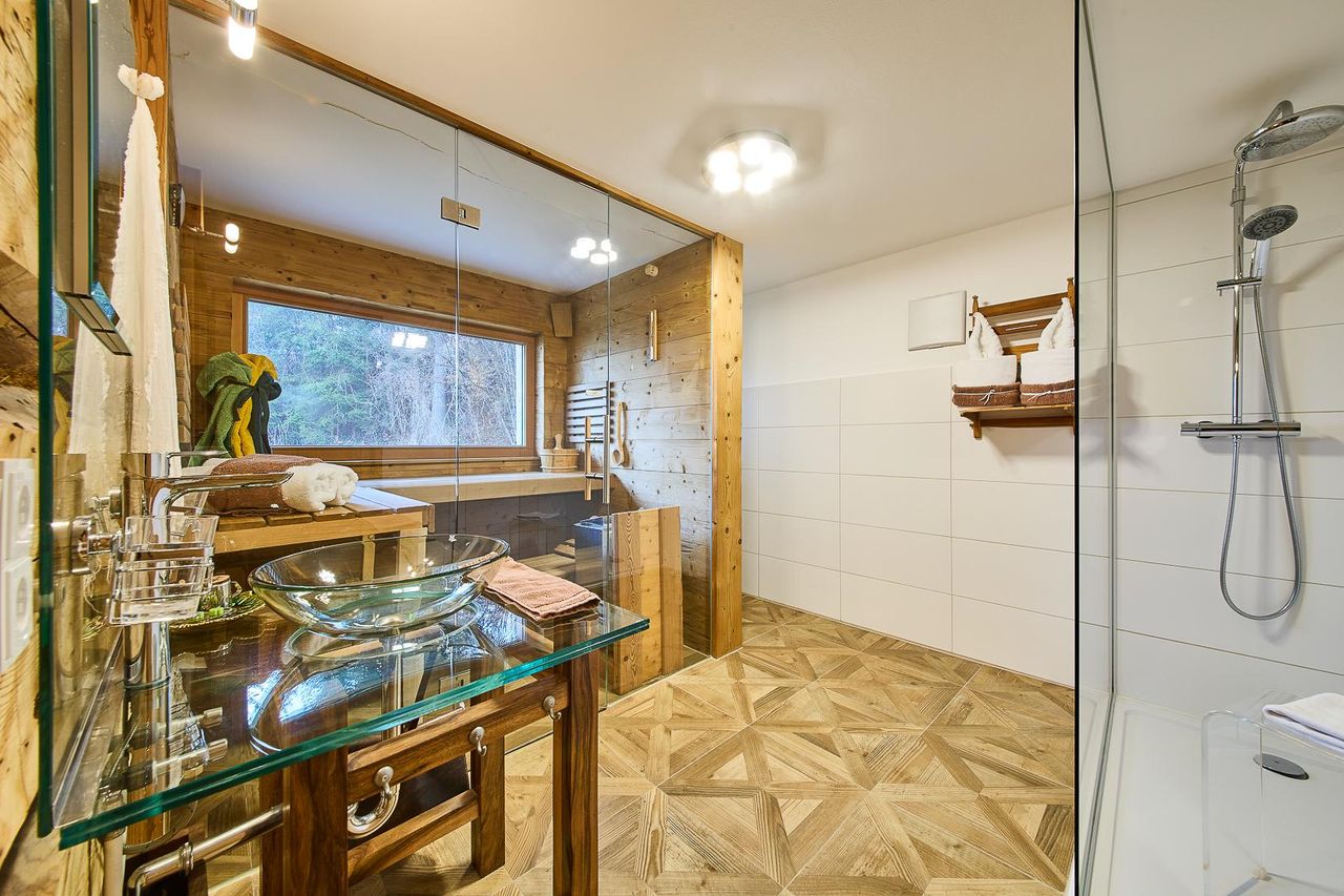 Die Häuser liegen in einer sonnigen Waldlichtung – ein absoluter Rückzugsort in wertvoller Stille. Hier genießen Sie:
