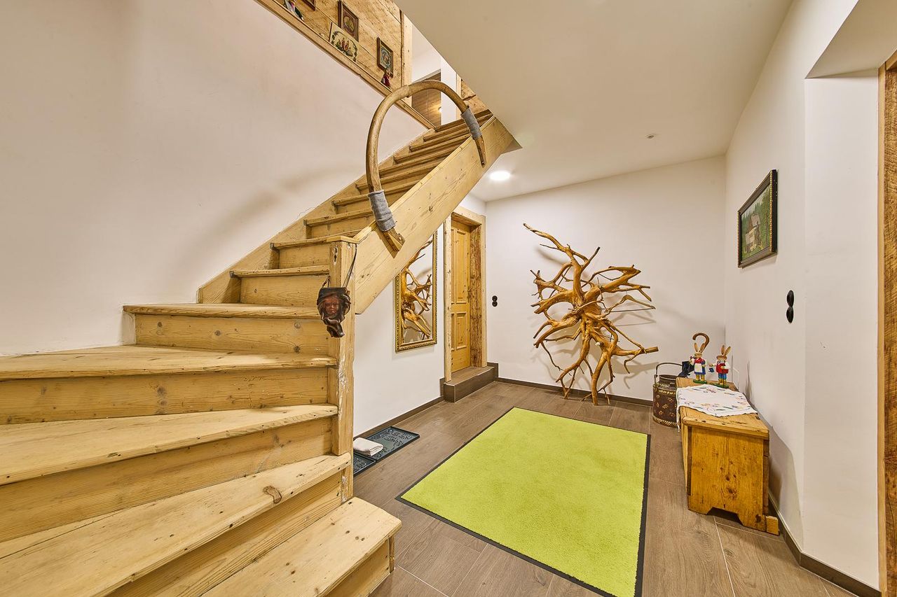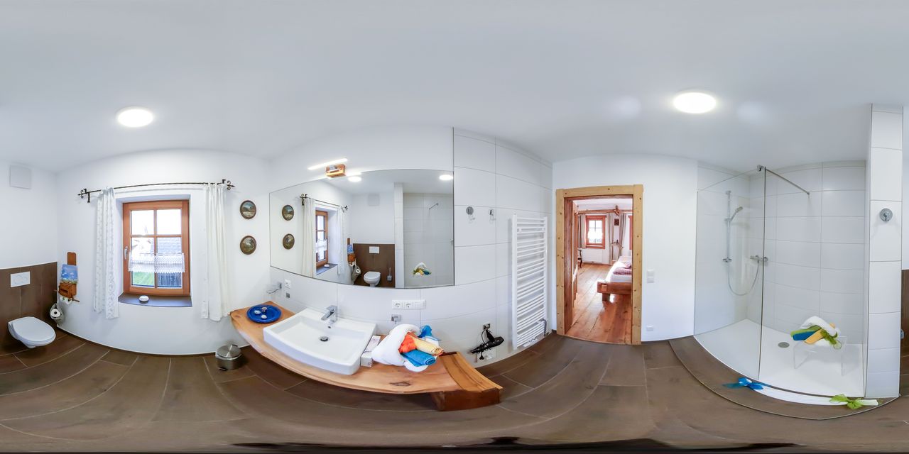 Die Böden in den Vorräumen und in den Bädern sind keramische Fliesen. In den Schlafräumen befinden sich Vollholzböden, teilweise Vollholzparkett.