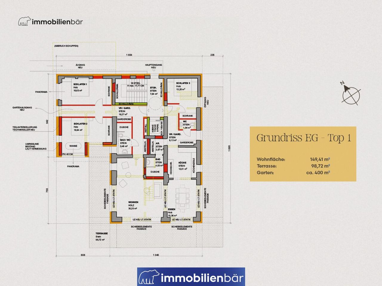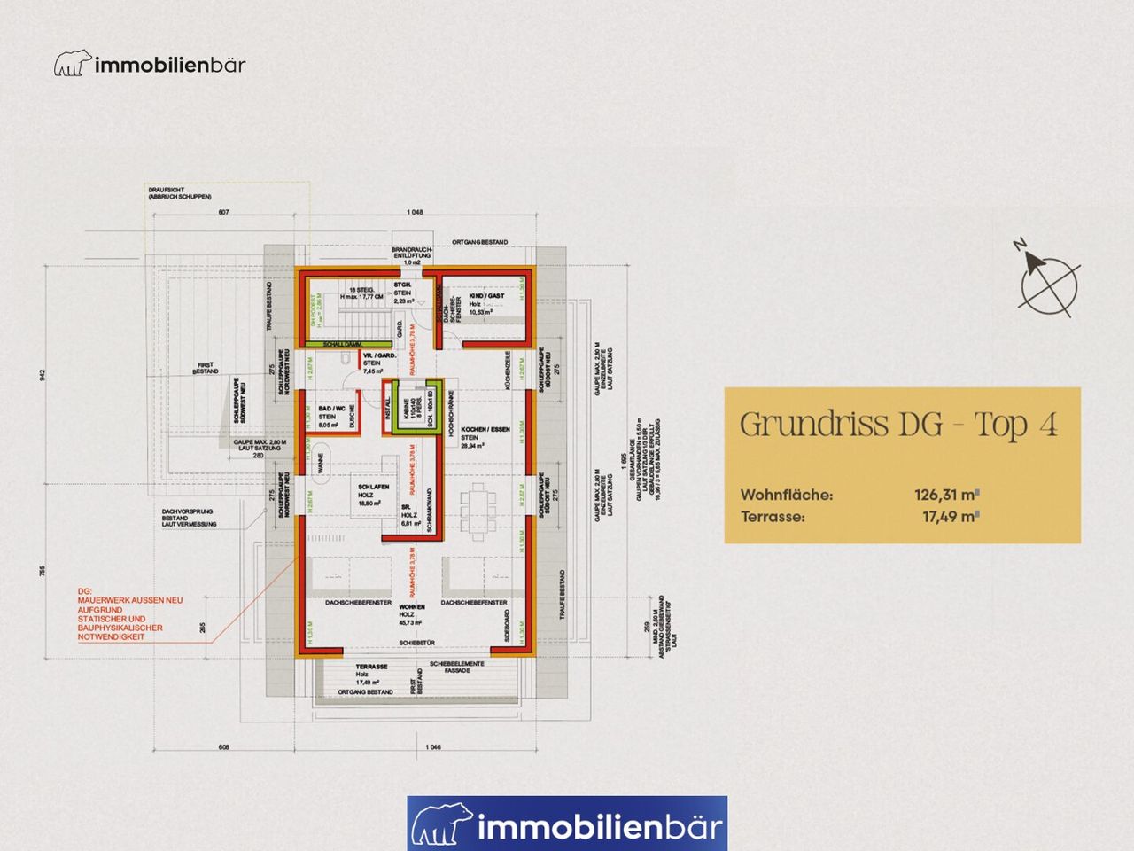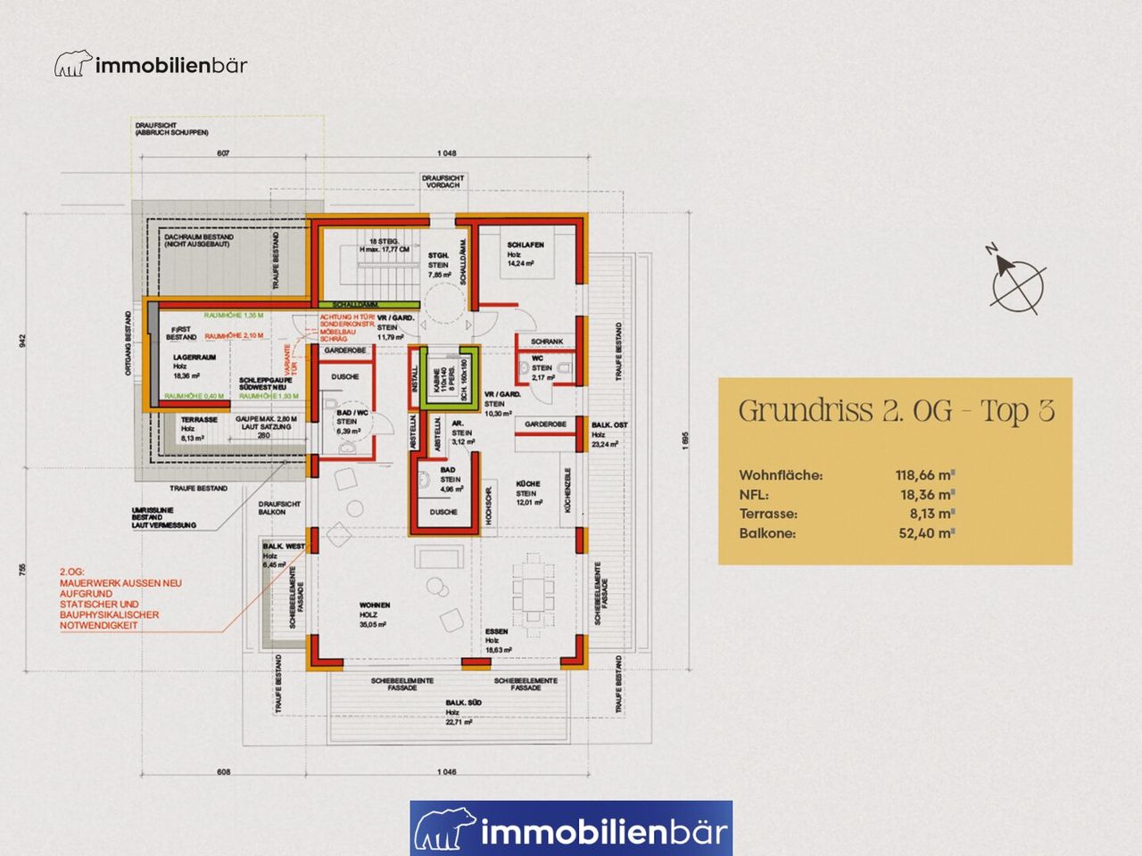 Das Gebäude ist professionell entkernt worden und kann nach den Wünschen des neuen Eigentümers frei gestaltet werden. Es liegen bereits Pläne vor, die aber nicht übernommen werden müssen. Jene Baumfirma, die die Entkernung vorgenommen hat, kann auch den Wiederaufbau durchführen.
