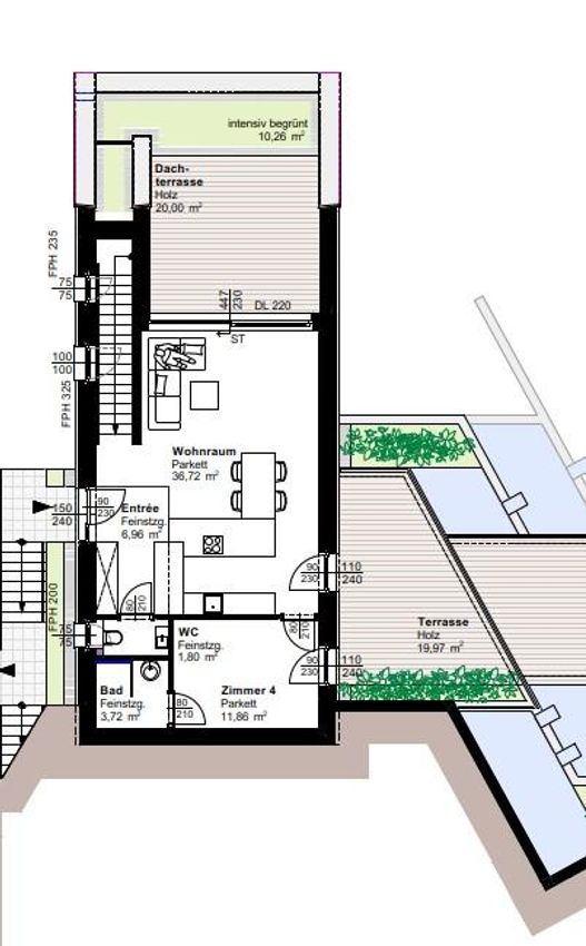 - alle Wohnungen verfügen über großzügige Freibereiche und Terrassen