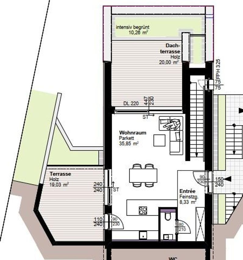 - alle Wohnungen verfügen über großzügige Freibereiche und Terrassen