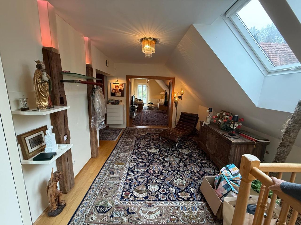 Für Arbeiten, Homeoffice oder kreative Entfaltung stehen ein großes Büro sowie ein zusätzlicher Arbeitsraum zur Verfügung. Ein separates Wohnzimmer im Obergeschoß erweitert das Nutzungsspektrum um einen weiteren privaten Aufenthaltsbereich. Funktionale Nebenräume wie Wasch- bzw. Heizraum, ein großer möblierter Abstellraum sowie ein ausbaubarer Dachboden bieten zusätzliche Flexibilität und Zukunftspotenzial.