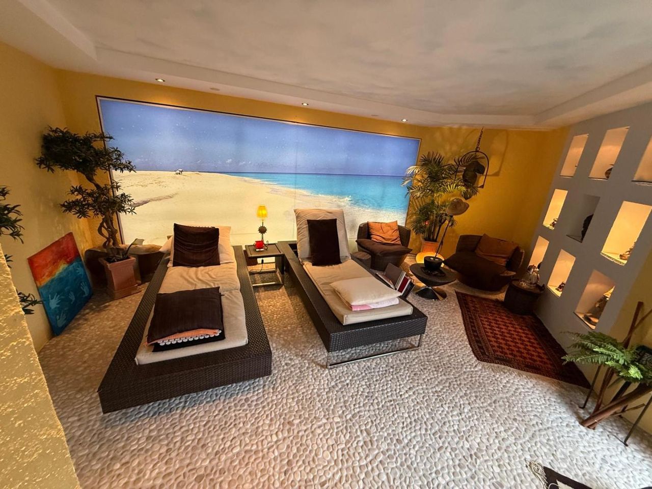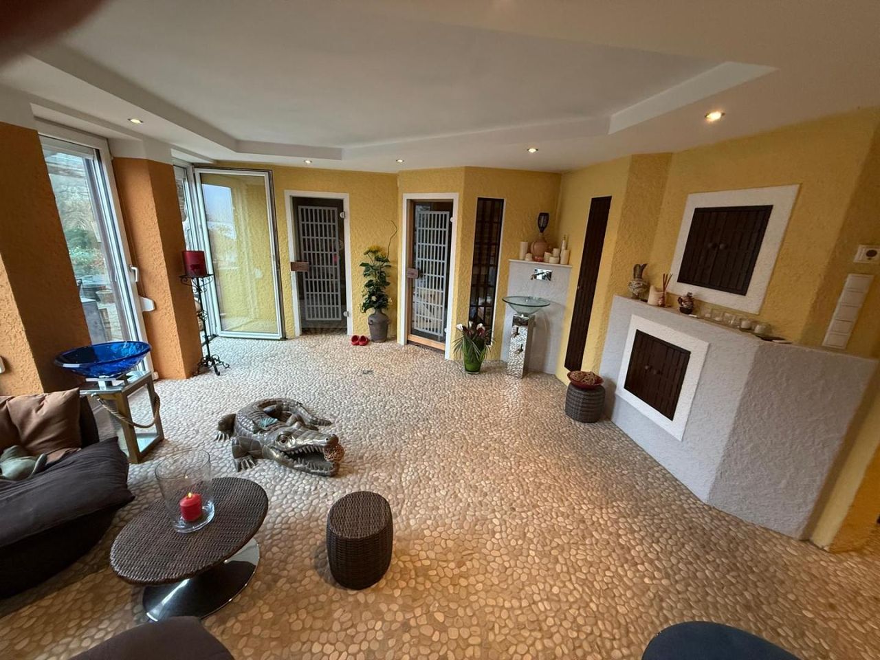 Ein herausragendes Alleinstellungsmerkmal bildet der exklusive Wellnessbereich mit drei Saunen, Solarium, Ruheräumen und Jacuzzi – ein privates Spa, das Entschleunigung auf höchstem Niveau ermöglicht. Ergänzt wird dieses außergewöhnliche Raumangebot durch die Grotte mit offenem Kamin, konzipiert als einzigartiger Treffpunkt für bis zu zwölf Personen.