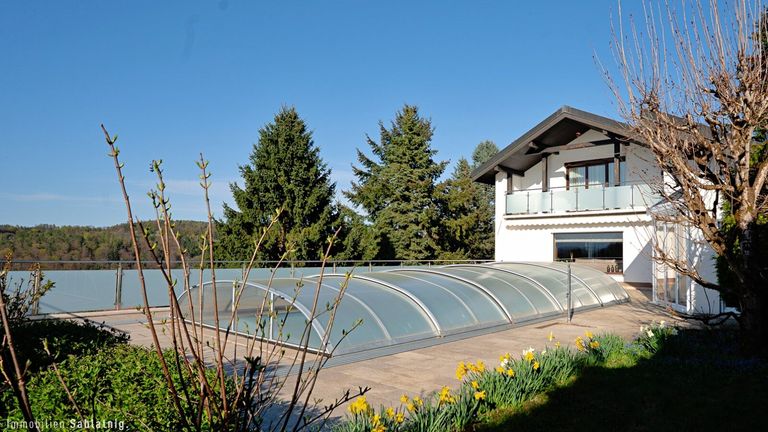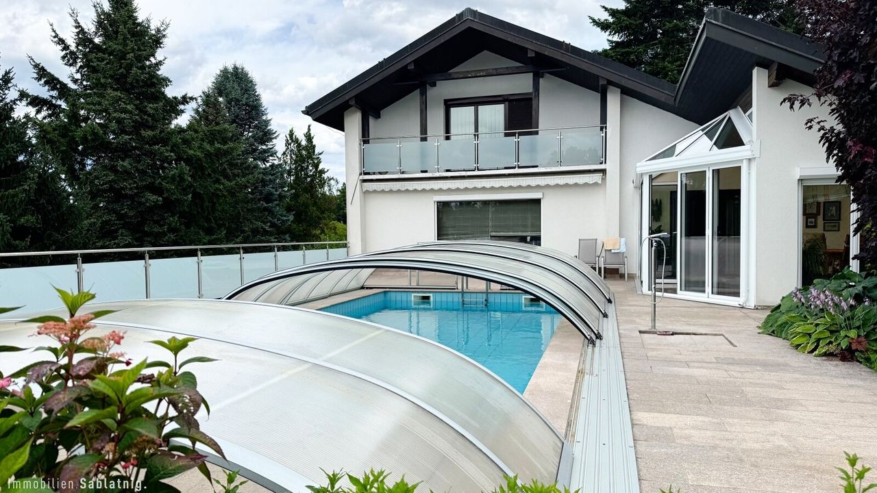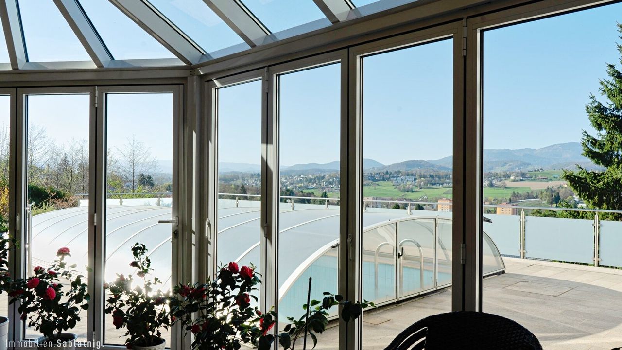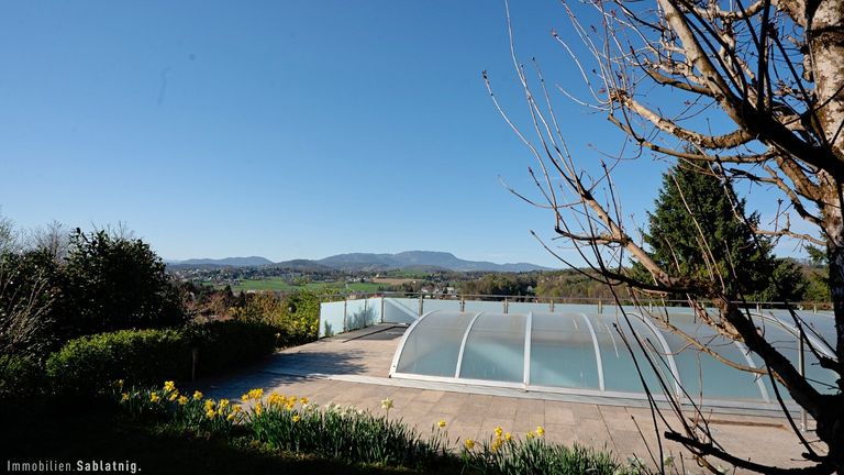 Ein besonderes Highlight: Sie schwimmen im Pool, genießen das beeindruckende Panorama und sind dabei vollkommen uneinsehbar. Diese seltene Kombination aus Weitblick und Privatsphäre verleiht der Immobilie eine ganz besondere Qualität. Der Blick reicht weit in die Ferne und schafft ein offenes, freies Wohngefühl – ein Ort, an dem Ruhe, Sonne und Aussicht perfekt zusammenspielen.