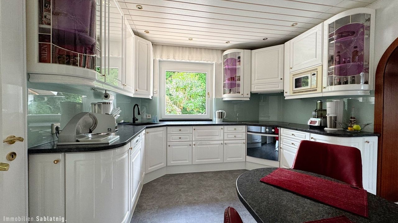 Das Wohnhaus bietet rund 193 m² Wohnfläche und überzeugt durch eine durchdachte Raumaufteilung sowie eine hochwertige Ausstattung. Im Erdgeschoss bildet das großzügige Wohnzimmer mit Kachelofen und offenem Kamin das Herzstück des Hauses. Angrenzend befindet sich das Esszimmer mit Zugang in den Wintergarten, der ebenfalls über einen Kamin verfügt und eine besonders angenehme Wohnatmosphäre schafft. Die exklusive italienische Designerküche mit Granitarbeitsplatte und hochwertigen Geräten namhafter Hersteller fügt sich harmonisch in das Gesamtbild ein und lässt keine Wünsche offen.