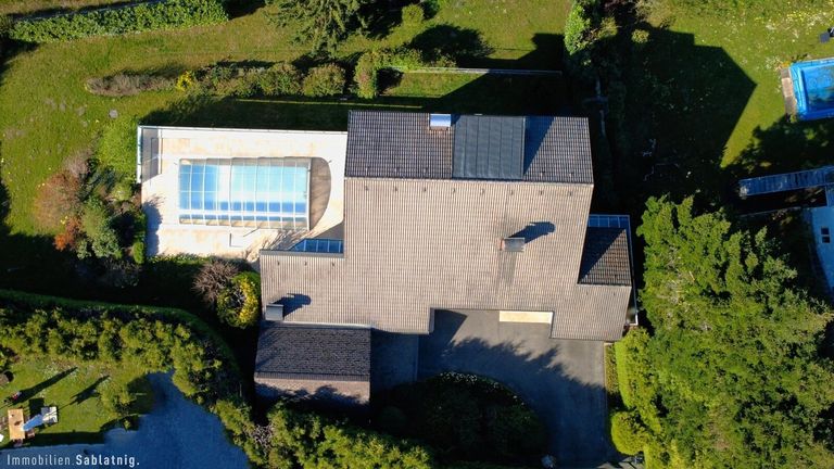 Hochwertige Materialien wie Granit und Parkett, elektrische Rollläden, dreifachverglaste Fenster sowie eine Öl-Zentralheizung mit Warmwasser-Wärmepumpe sorgen für hohen Wohnkomfort.