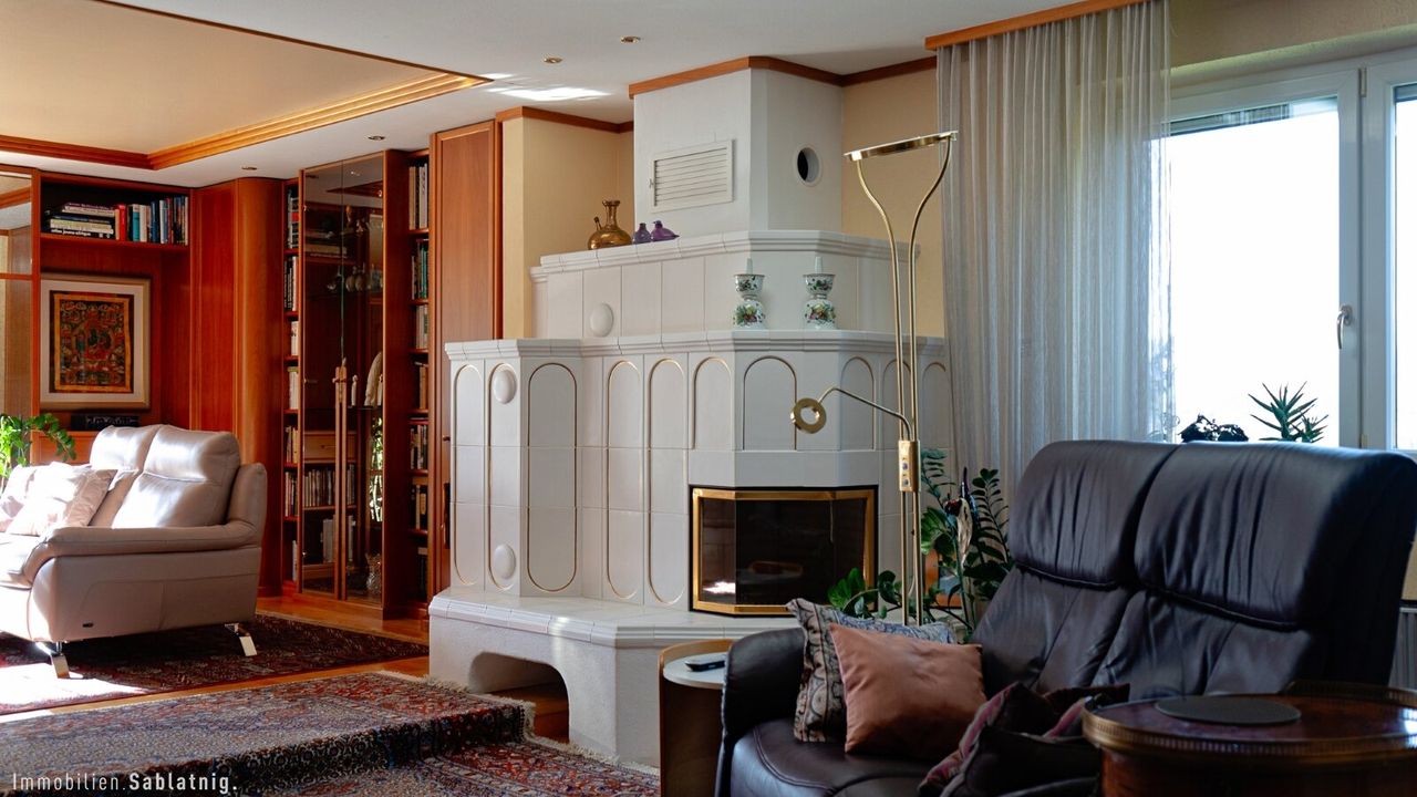 - Großzügiger Wohnbereich mit Kachelofen & Kamin
