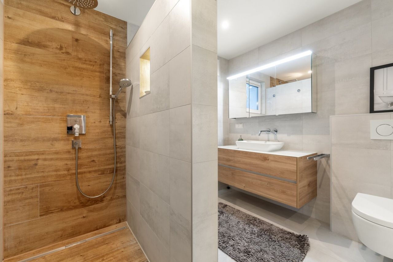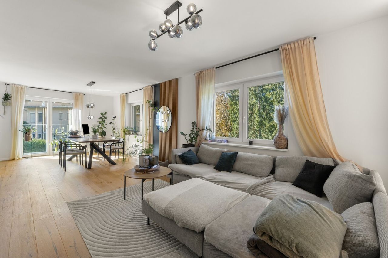 Bereits beim Betreten spürt man die besondere Atmosphäre dieses Hauses. Helle, großzügig geschnittene Räume, hochwertige Materialien und ein stimmiges Gesamtkonzept schaffen ein Ambiente zum Wohlfühlen.
