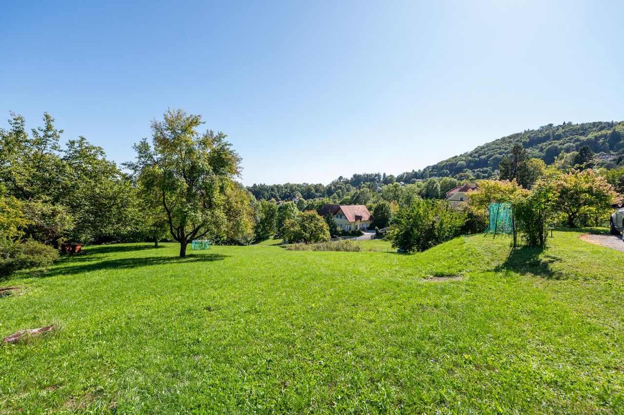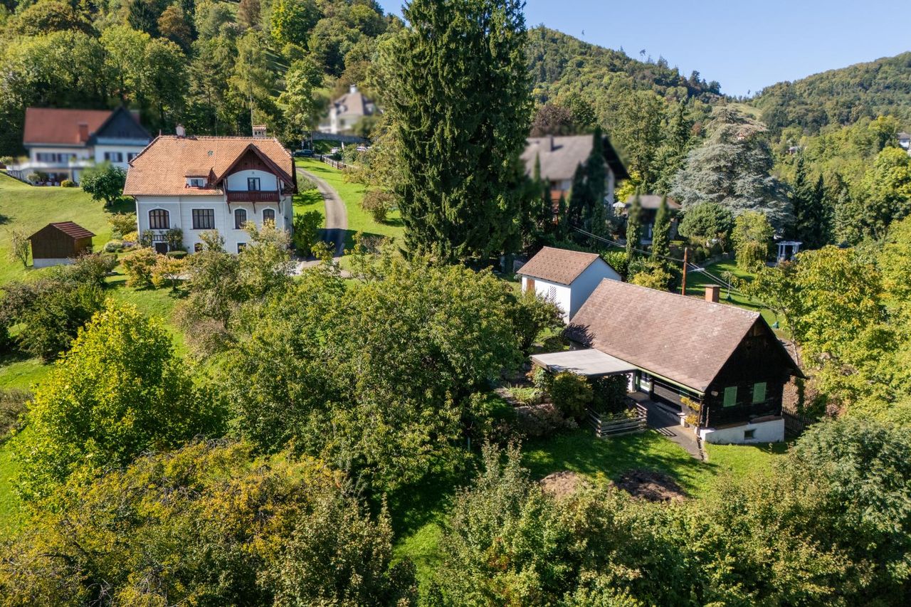 Ein Ort zum Verlieben – Villa mit Charme und traumhaftem Ausblick Diese außergewöhnliche Villa aus dem Jahr 1913 und einer Wohnfläche von ca. 300 m² besticht durch ihren zeitlosen Charme, architektonischen Charakter und ihre einmalige Lage mit traumhaftem Fernblick. Die Immobilie befindet sich auf einem großen Grundstück von ca. 5.998 m², in Graz-Wetzelsdorf am Buchkogel. Hier werden Ruhe, Privatsphäre und Naturerlebnis vereint – Ein wahres Paradies für Naturliebhaber. Die insgesamt 6.385 m² setzen sich aus 5.998 m² Bauland mit einer Widmung WR 0,2-0,3 und einem 387 m² Straßenanteil zusammen. Die Liegenschaft befindet sich in leichter Hanglage, wodurch sich von den...