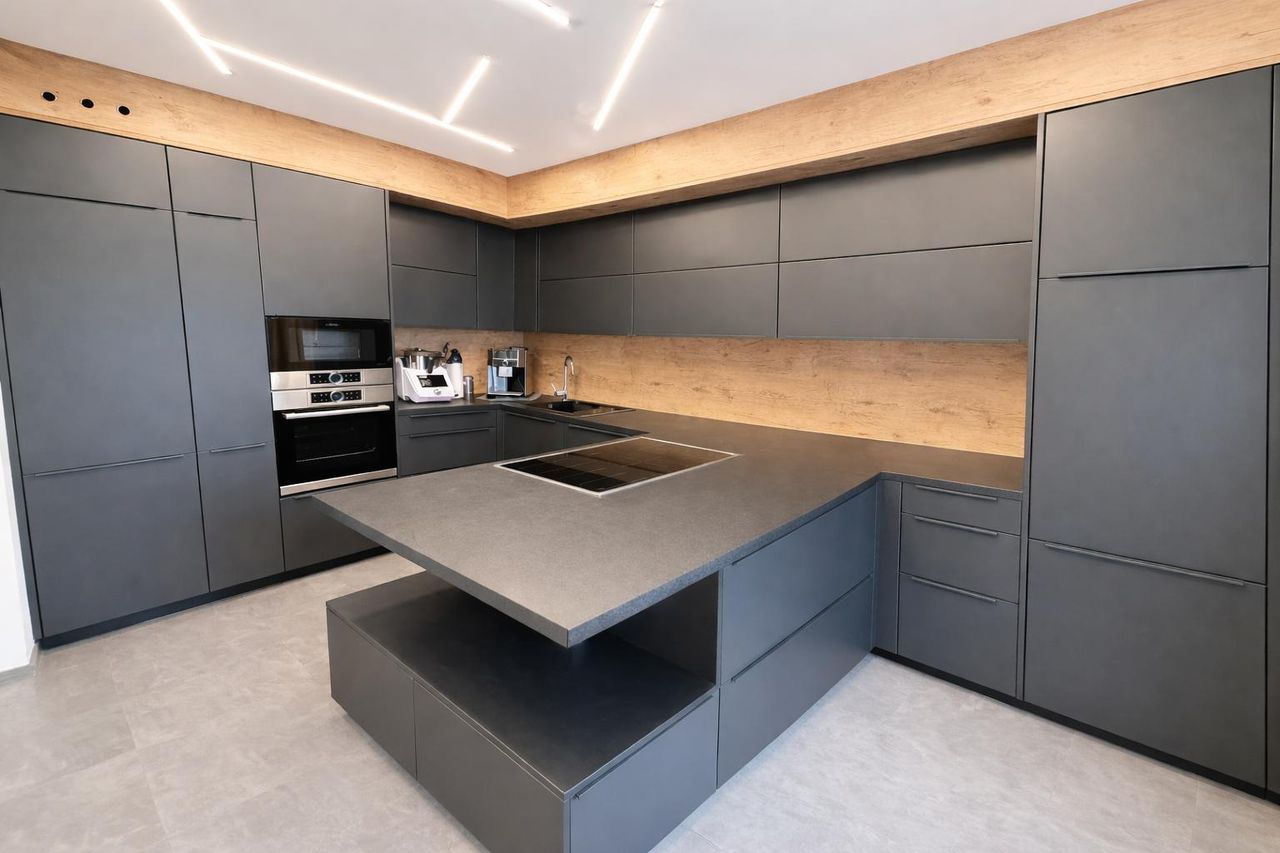 Stilvolle Doppelhaushälfte mit Garten, Designküche und überdachter Terrasse