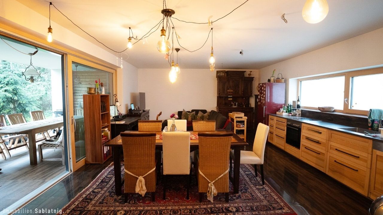 Schon beim Betreten entsteht ein Gefühl von Wärme und Behaglichkeit. Der hochwertige Dielenboden durchzieht alle Wohnräume und verleiht ihnen eine elegante, natürliche Atmosphäre. Im großzügigen Wohn- und Essbereich verschmelzen durch die großen Fensterflächen Innen- und Außenraum – der Garten wird Teil des Wohnraums. Die stilvolle Einbauküche fügt sich...