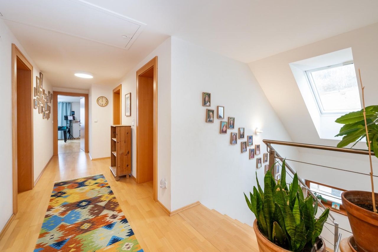 Die Umgebung ist geprägt von gepflegten Einfamilienhäusern, Wiesen und Wäldern – ein echter Rückzugsort für Erholungssuchende. Gleichzeitig überzeugt die Lage durch kurze Wege zu Schulen, Kindergärten, Nahversorgern und medizinischer Versorgung. Das Grazer Stadtzentrum ist in etwa 15–20 Minuten bequem erreichbar. Wanderwege, Radstrecken und Freizeitmöglichkeiten liegen direkt vor der Haustür.