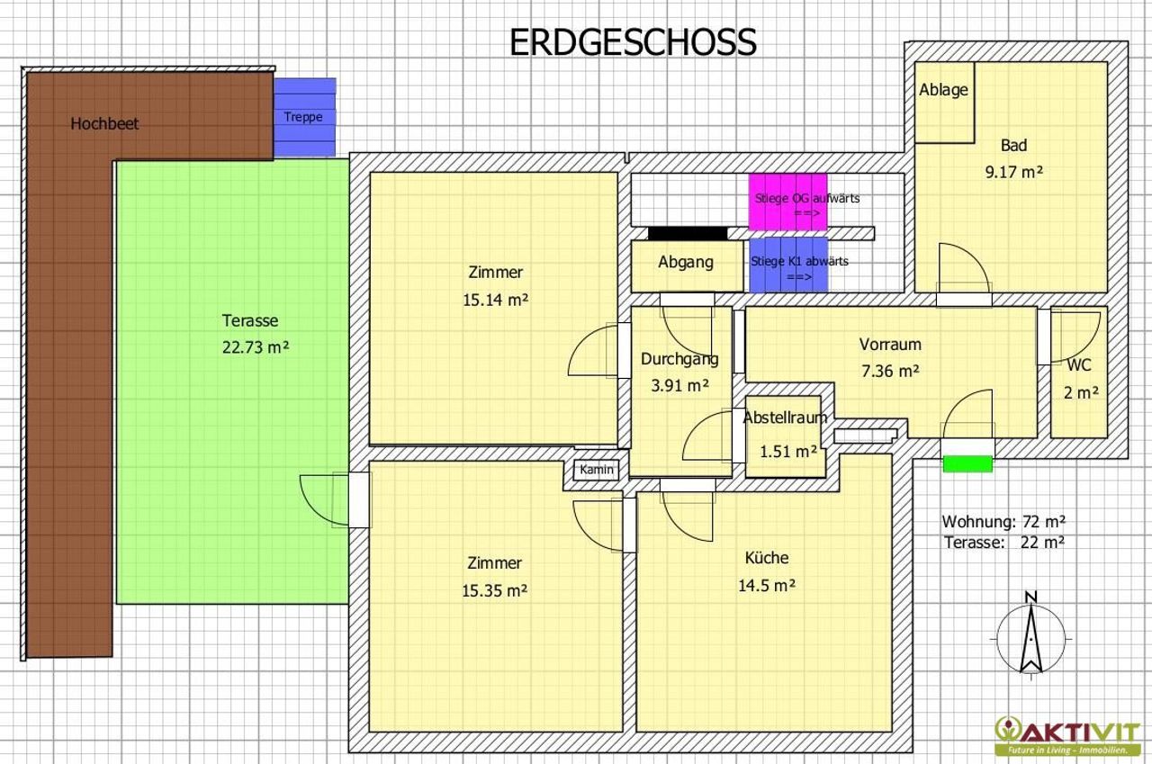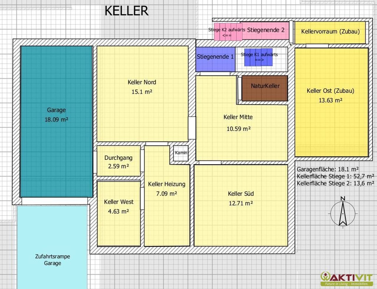 - Nebenflächen: ca. 73,6 m² Keller, Garage ca. 18 m²