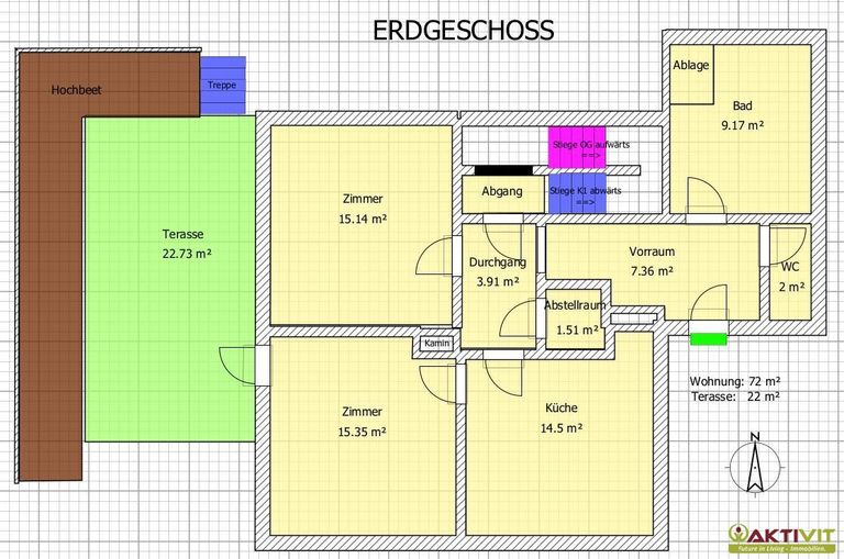 - Freiflächen: Terrasse ca. 22 m², Balkon ca. 19 m²