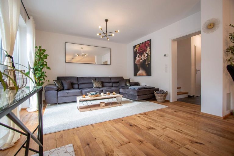 Auf rund 125 m² Wohnfläche, verteilt auf zwei Ebenen, präsentiert sich ein klar strukturiertes Raumkonzept mit insgesamt vier Zimmern, davon drei Schlafzimmer, zwei Badezimmer sowie ein separates Gäste-WC. Der großzügige Wohn- und Essbereich mit offener Küche bildet das Zentrum des Hauses und öffnet sich direkt zur Terrasse und in den Garten. Die...
