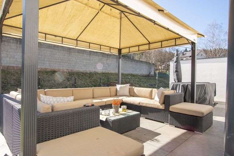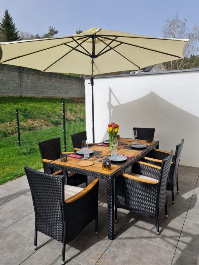 Ein besonderes Highlight der Immobilie ist der private Außenbereich: Die sonnige, gepflasterte Terrasse mit Pavillon sowie der Whirlpool schaffen einen exklusiven Rückzugsort für Entspannung und Erholung in absoluter Ruhelage. Der Garten ist gepflegt angelegt und bietet ausreichend Platz für Freizeit, Familie und Privatsphäre. Ergänzt wird das Angebot durch einen separaten Technik- und Abstellraum sowie drei Freistellplätze direkt beim Haus.