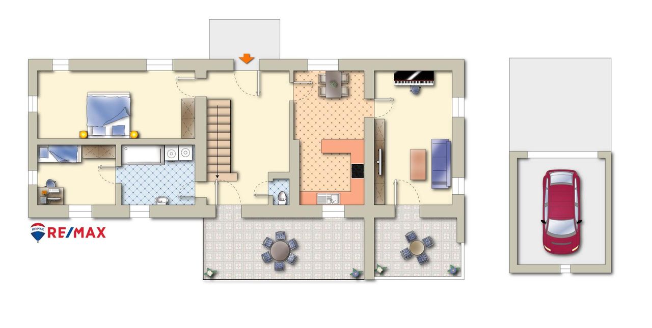 Ergänzt wird das Angebot durch eine Garage sowie einen Teilkeller, der praktischen Stauraum bietet.