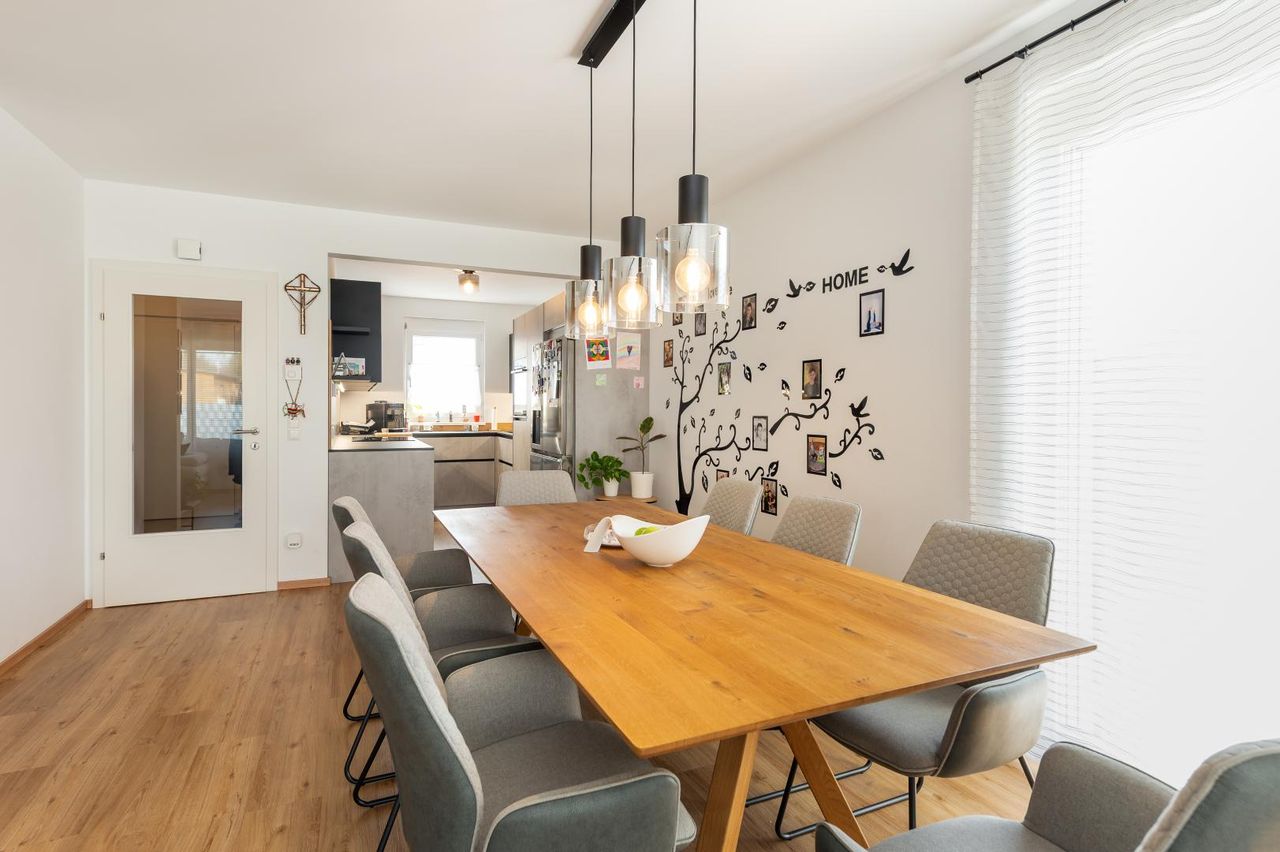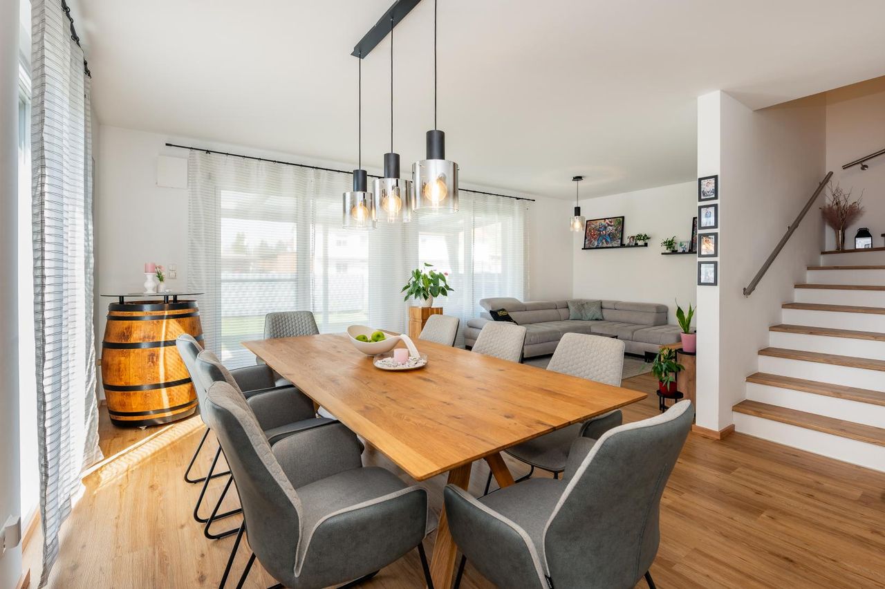 Errichtet in Ziegelmassivbauweise besticht dieses Wohnhaus der Firma Kohlbacher durch den modernen Grundriss und die großzügige Raumaufteilung. Genießen Sie und Ihre Familie sonnige Stunden im großen Garten oder am Balkon im Obergeschoß. Die moderne DAN-Küche ist ausgestattet mit Neff Geräten und einem Herd der Firma Bora. Die 3-fach verglasten Kunststofffenster bieten zusätzlich Rollläden und Insektenschutzgitter. Für wohlige Wärme im ganzen Haus sorgt die Fußbodenheizung, welche mittels Fernwärme betrieben wird.