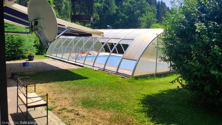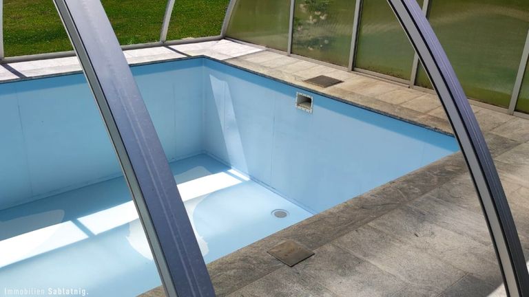 - Swimmingpool mit begehbarer Überdachung – nahezu wetterunabhängig nutzbar
