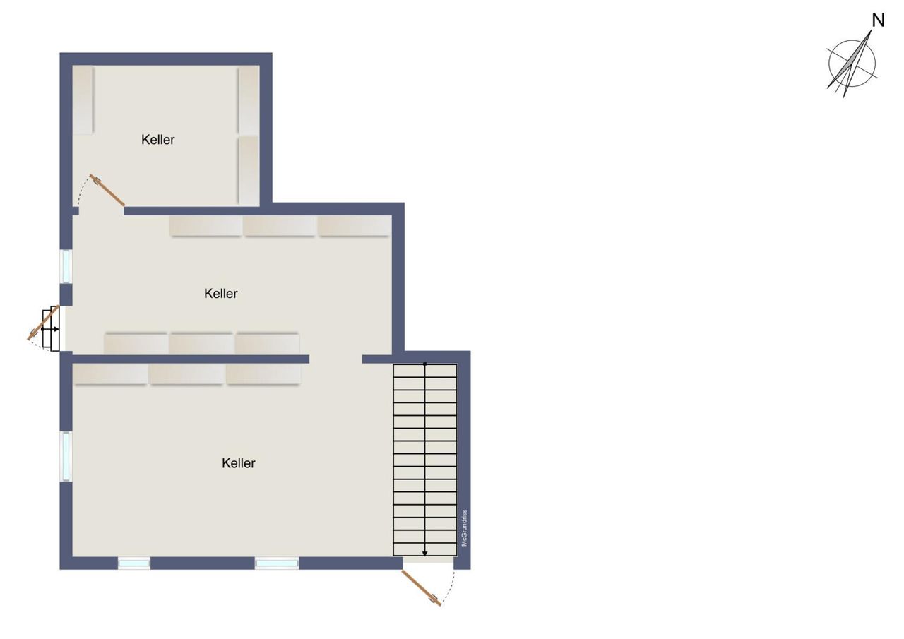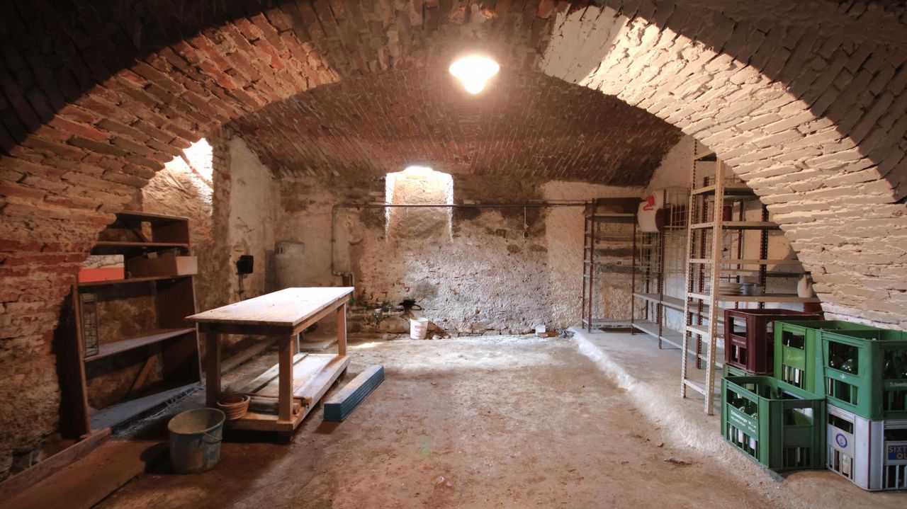 Kellerbereich: ca. 90 m², Gewölbe, massiv aus Ziegel, bestehend aus 3 Räumen