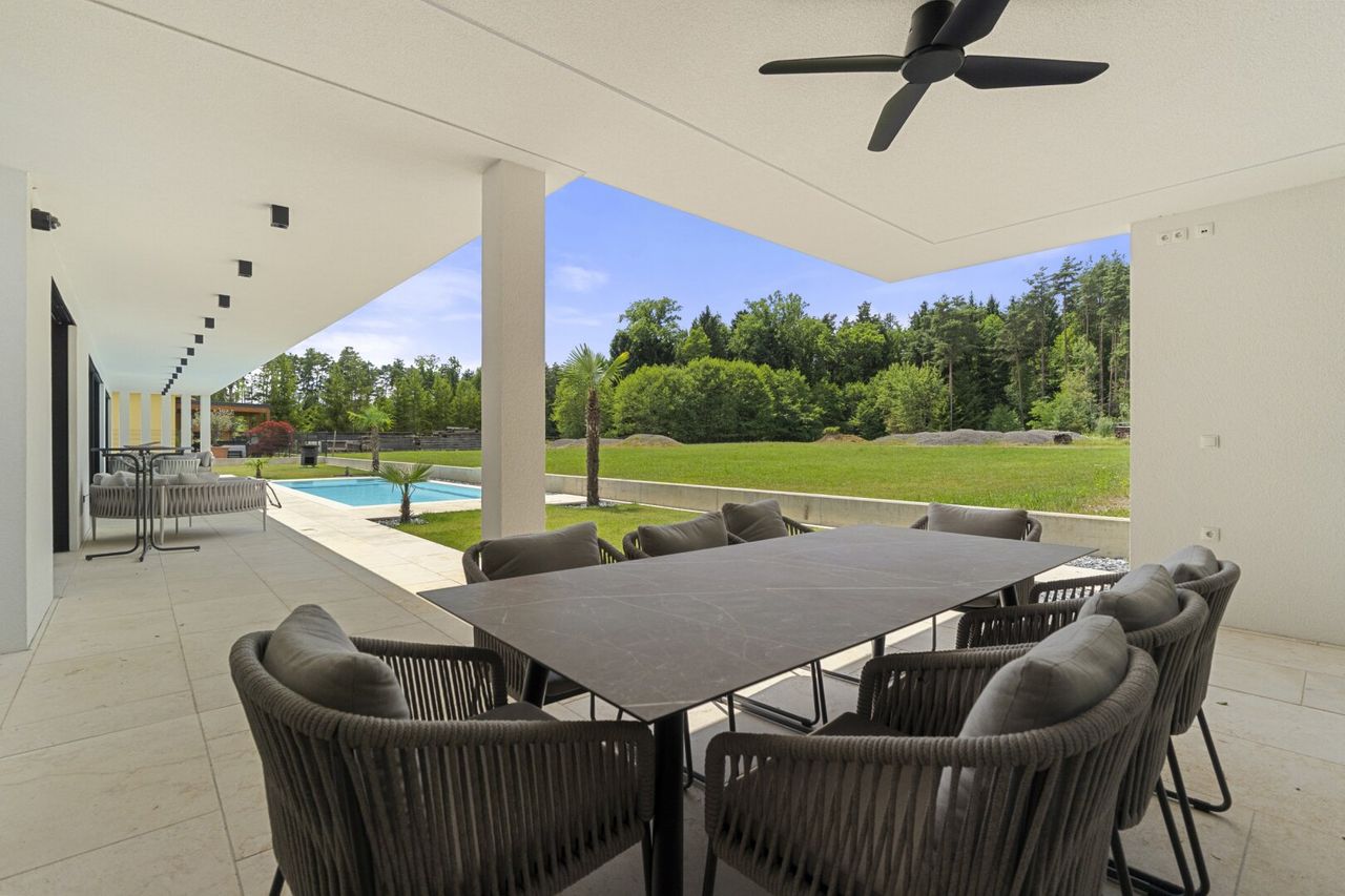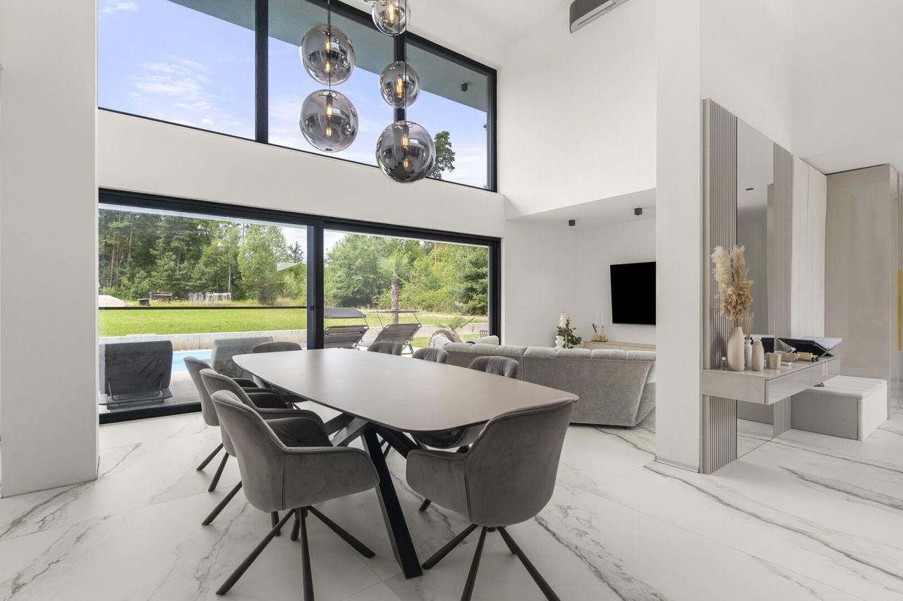 Zeitlose moderne Linien, durchdachte Grundrisse und lichtdurchflutete Räume schaffen eine Atmosphäre, die sowohl