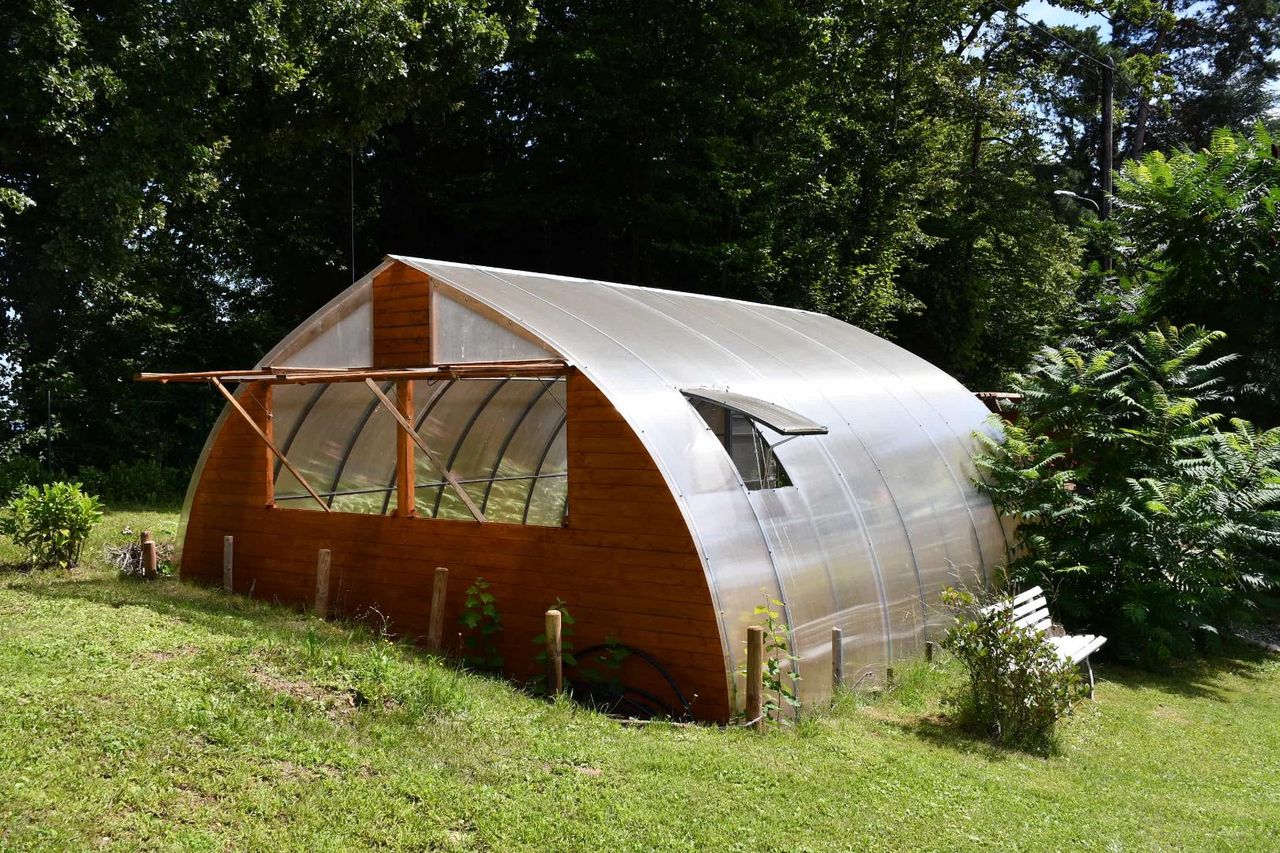 Ein Wirtschaftsgebäude mit großzügigem Lagerraum bietet praktische Lösungen für Stauraum und Nutzungsflexibilität. Ein schlichtes Gartenhaus und ein malerisches Gewächshaus komplettieren die Struktur des Anwesens und bieten Raum für vielfältige Beschäftigung.
