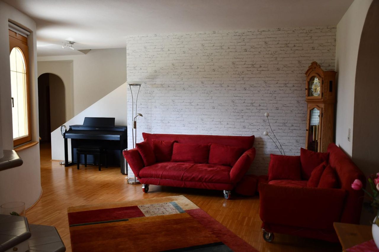 Das Innere des Hauses besticht durch großzügig gestaltete, offene Wohnbereiche, die eine nahtlose Verbindung zwischen den Räumen schaffen und ein Gefühl von Freiheit und Licht vermitteln. Die zahlreichen Zimmer bieten ausreichend Raum für Ihre individuellen Bedürfnisse – sei es für familiäre Zusammenkünfte, private Rückzugsorte oder kreative Entfaltung.