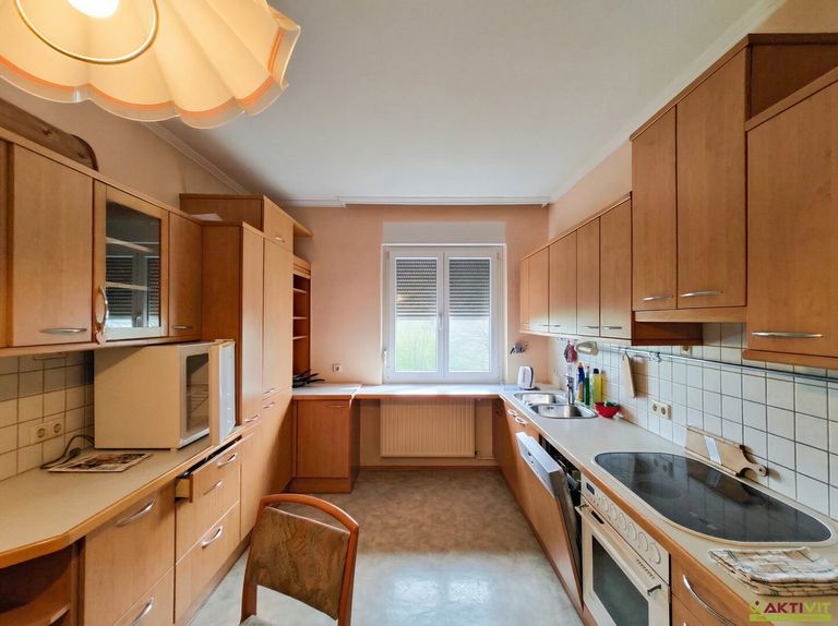 Zur Ausstattung zählen unter anderem unterschiedliche Bodenbeläge (Fliesen, Parkett, Teppich), Einbauküchen, Badezimmer mit Badewanne sowie eine Beheizung mittels Fernwärme. Ein Keller sowie zusätzliche Nutzflächen im Dachgeschoss sind vorhanden.