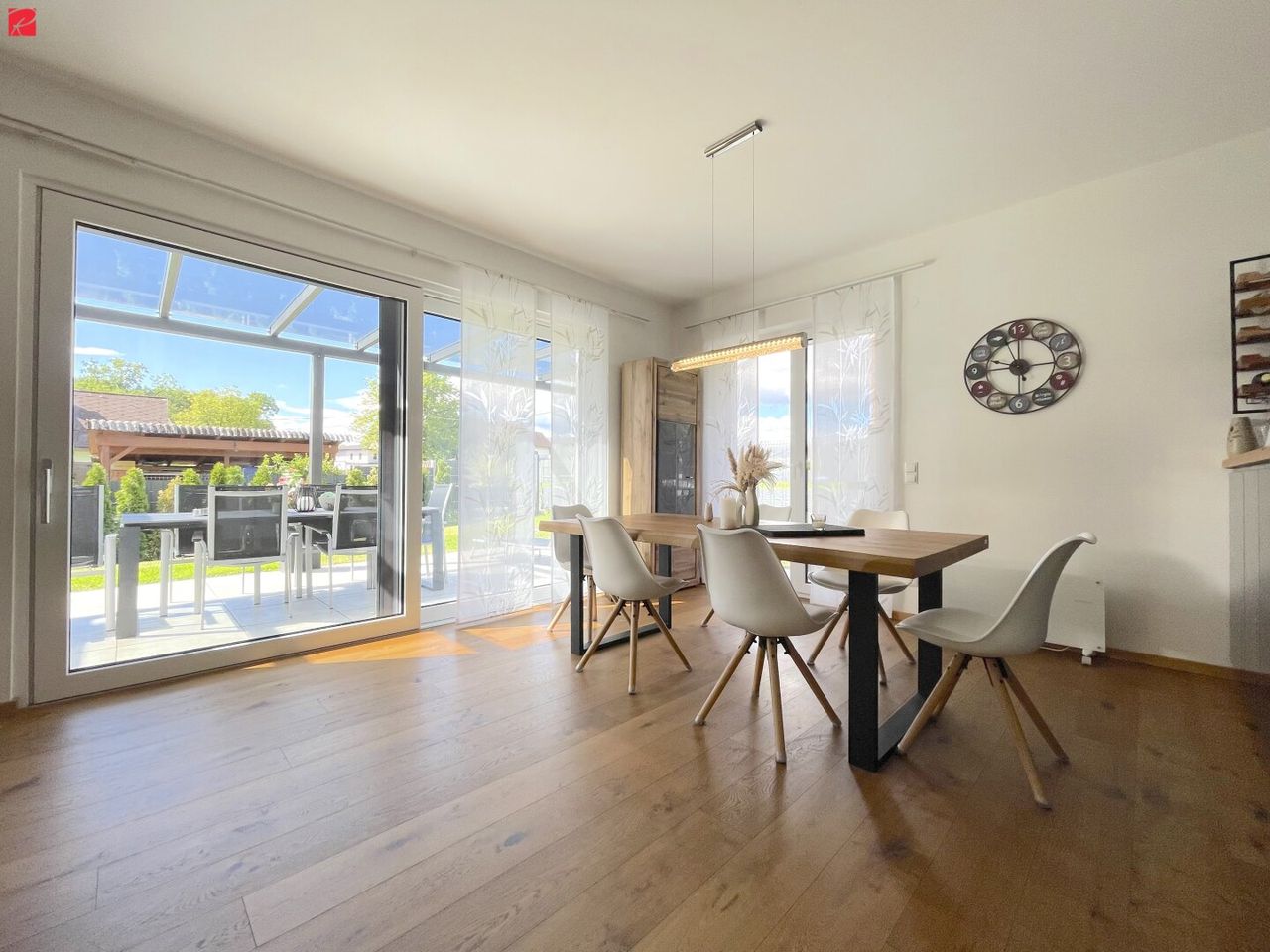 Einziehen und rundum wohlfühlen: Diese äußerst gepflegte Liegenschaft wird Ihre zukünftige, wohltuende Wohlfühloase: drei Zimmer sind ca. gleich groß und die überhohen Räume lassen das Haus großzügig und offen wirken. In der eleganten Tischlerküche können Sie nach Herzenslust Köstlichkeiten zubereiten - dafür stehen Ihnen ein Gorenje-Induktionsherd, ein Bora-Bora Abzug, ein Geschirrspüler, ein Side-by-Side Kühlschrank von Samsung und ein Backofen von Siemens zur Verfügung. Der Backofen ist in angenehmer Höhe angebracht, sodass Ihnen das Köcheln im Alltag oder in Erwartung zahlreicher Gäste vereinfacht wird. Das noble Badezimmer hält ein besonderes Highlight für Sie bereit: eine großzügige Glasfront trennt die reizvolle Walk-In Regendusche vom großzügigen Doppelwaschtisch mit beleuchtetem Spiegel und der charmanten Badewanne. Ein geräumiger Vorraum bietet Raum und Platz für Ihre Garderobe und ist mit hochwertigen Feinsteinzeug-Fliesen ausgestattet. Ein Abstell- und Technikraum beherbergt Ihre Haushaltsutensilien, einen Waschmaschinenanschluss, ein Fenster und die Luftwärmepumpe. Diese dient zur Beheizung oder zur Kühlung der Fußböden!
