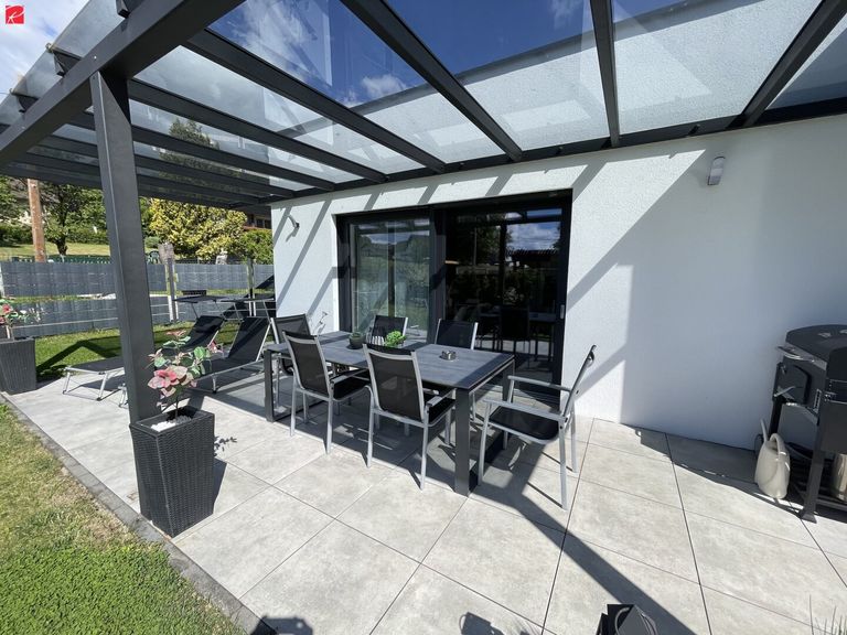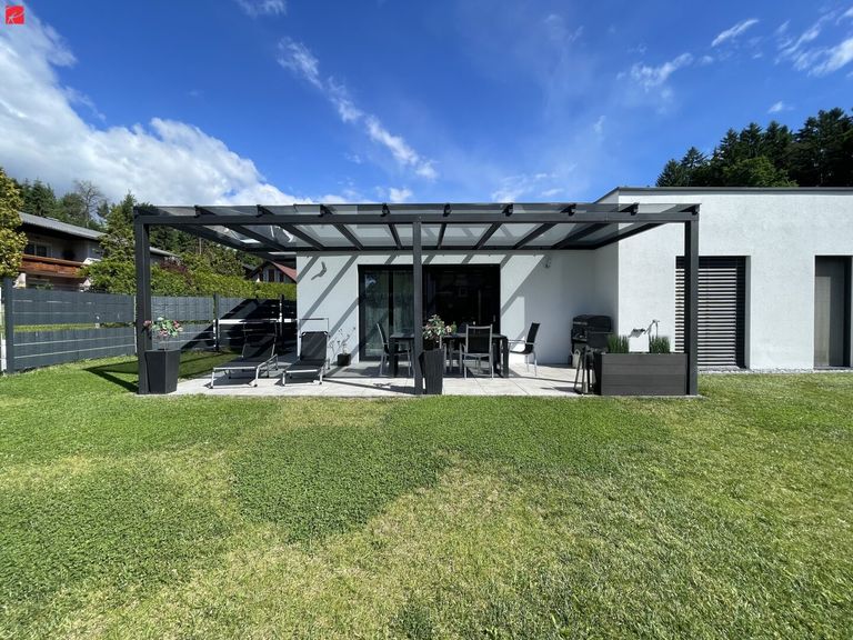Der Ziegelmassivbau wurde 2020 fertiggestellt und auf die Zukunft vorbereitet: die Vorrichtung für eine Photovoltaik-Anlage ist bereits vorhanden. Die Genehmigung für ein Swimmingpool wurde bereits eingereicht. Das Flachdach ist mit 6-facher Folie und Kies ausgelegt. Die 2,40 Meter hohe Eingangstüre ist mit einem Fingerprint-Sensor ausgestattet. Zur Liegenschaft gehört ein Doppel-Carport und zwei weitere PKW-Abstellplätze. Eine Gartenhütte dient als Kellerersatzraum.