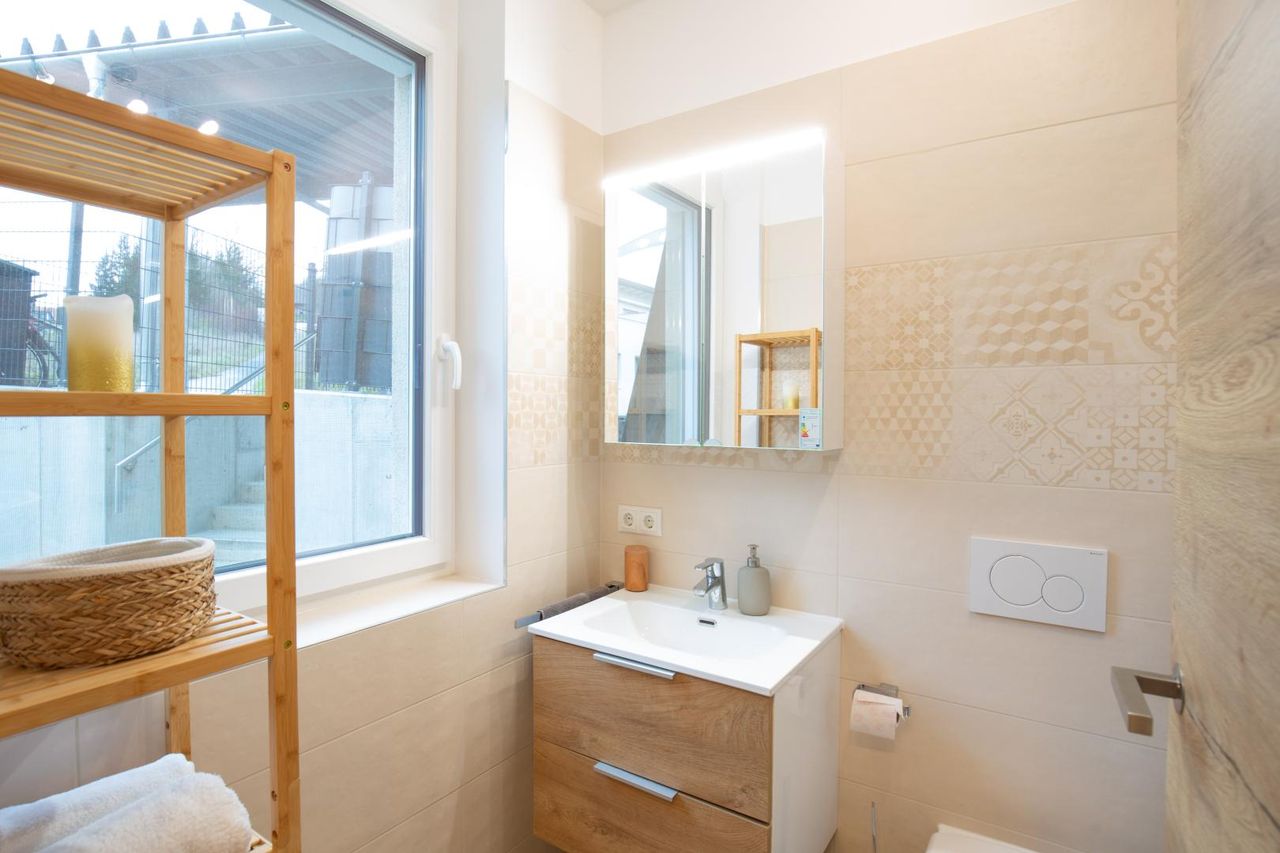 - Hochwertig ausgestattetes Badezimmer mit Dusche & WC